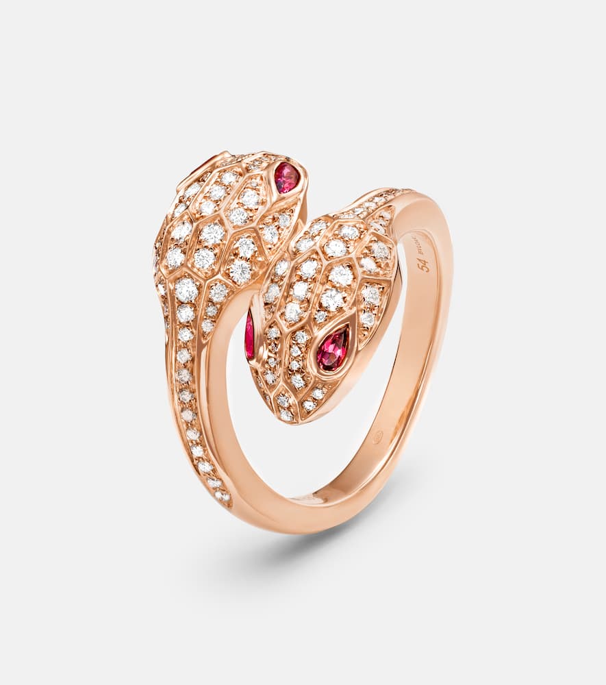 Serpenti Seduttori 18kt rose gold ring with diamonds and rubellites