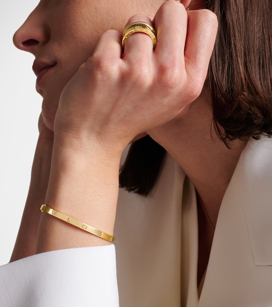 This B.zero1 Essential 18kt gold bangle by Bvlgari is a bold and iconic accessory that embodies the brand's signature elegance. The bangle's sculptural, fluid design is expertly crafted from yellow gold, creating a beautiful coil that feels both powerful and luxurious. This bangle is a true statement of refined taste and a celebration of uncompromising quality. It is a versatile accessory that can be worn for both everyday moments and special occasions, symbolizing a confident approach to style and a love for modern architectural design.