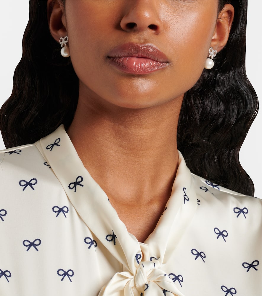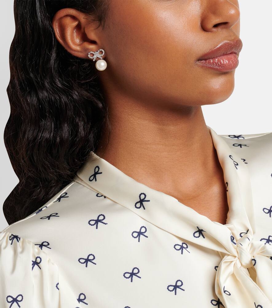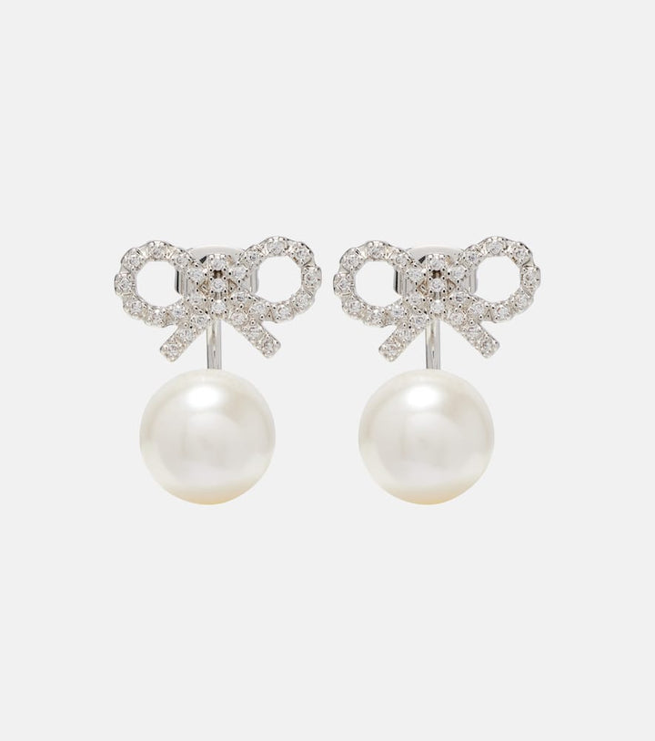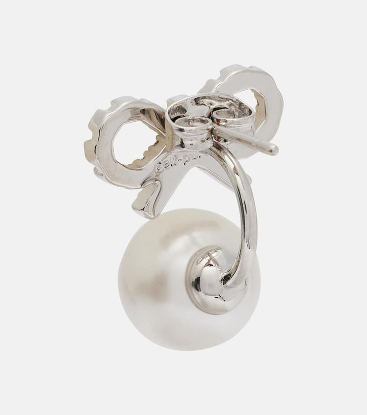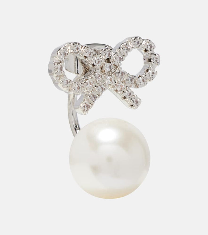 These Embellished earrings by Self-Portrait are a stunning accessory that embodies the brand's modern and romantic aesthetic. The earrings feature a delicate and fluid design, expertly crafted from brass and adorned with shimmering cubic zirconia and elegant faux pearls. The pieces feel both organic and luxurious, a true statement of refined taste and a celebration of uncompromising quality. These earrings are a versatile accessory that can be worn for both everyday moments and special occasions, symbolizing a confident approach to style.