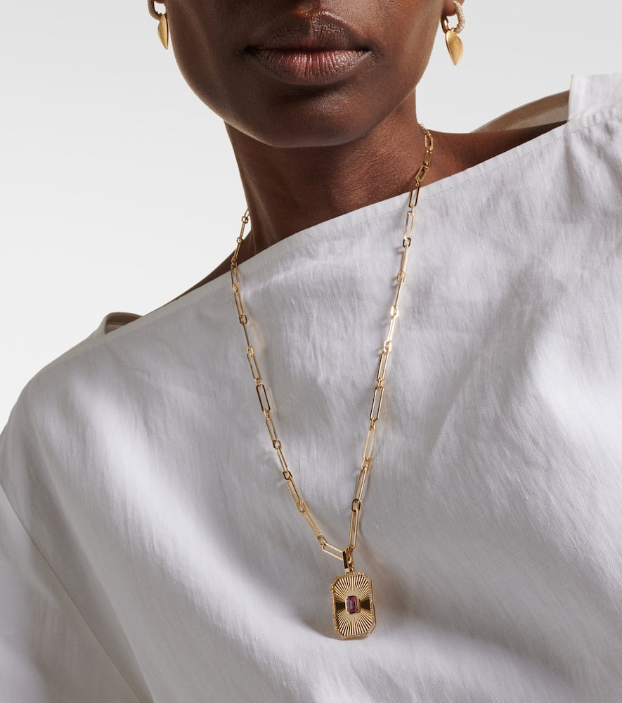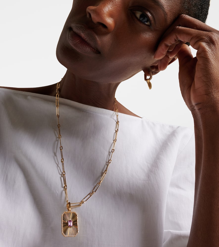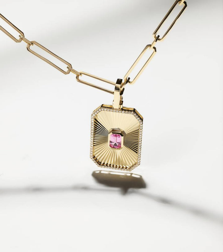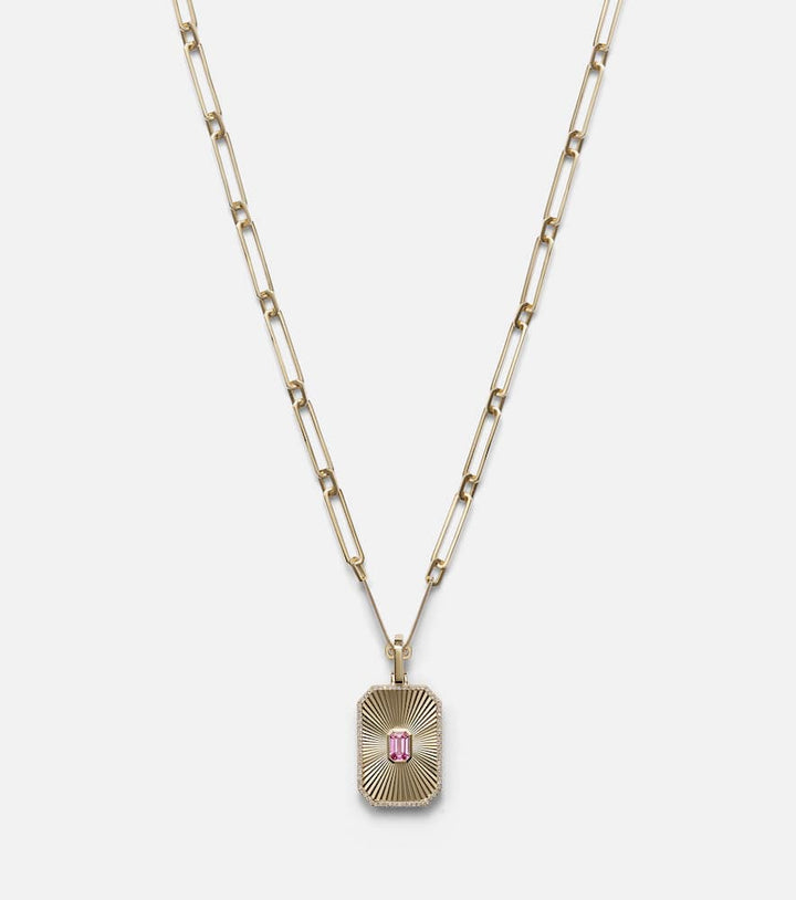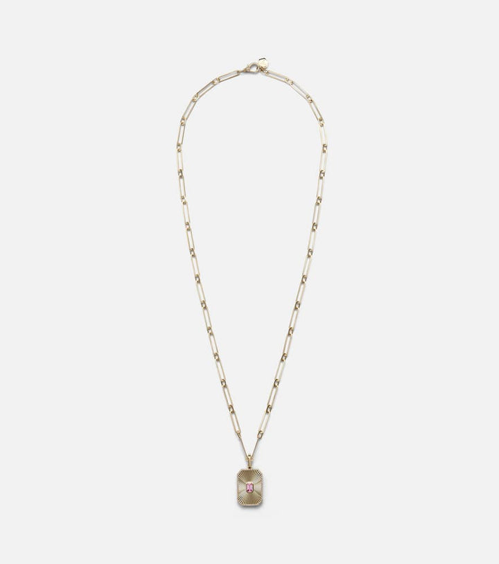 Radiant Deco 18kt gold pendant necklace with sapphire and diamonds