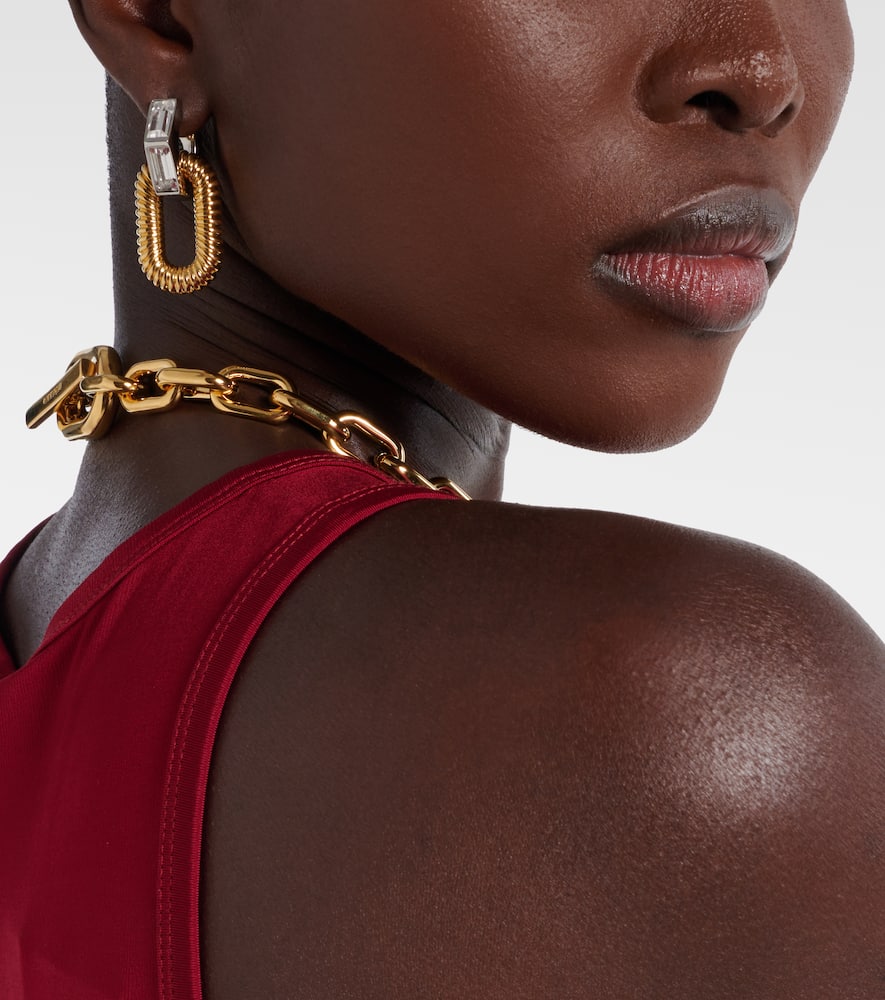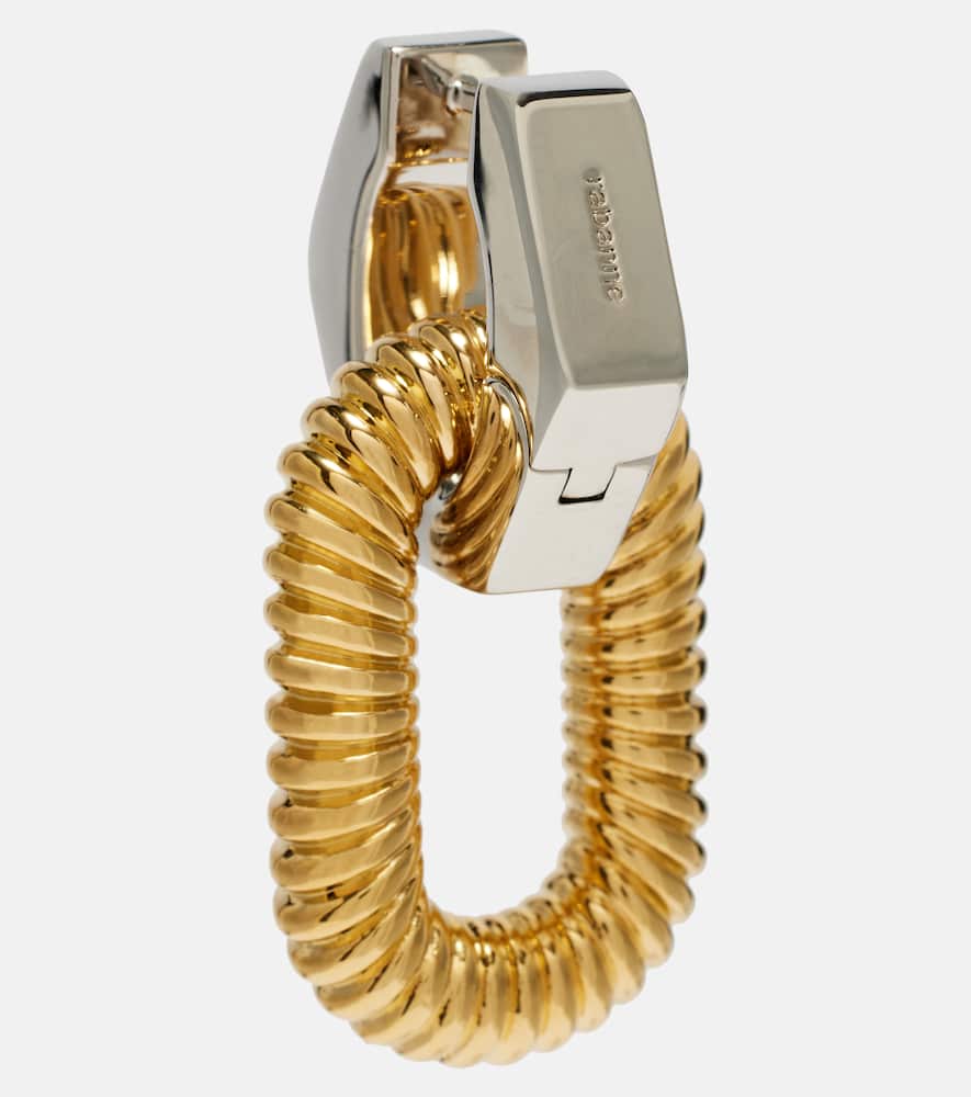 These Link XL drop earrings by Rabanne are a sleek and modern accessory that captures the essence of contemporary elegance. The earrings' sculptural, fluid design is expertly crafted from brass, creating a unique and artistic look. The piece feels both powerful and elegant, a true statement of refined taste and a celebration of uncompromising quality. These earrings are a versatile accessory that can be worn for both everyday moments and special occasions, symbolizing a confident approach to style.