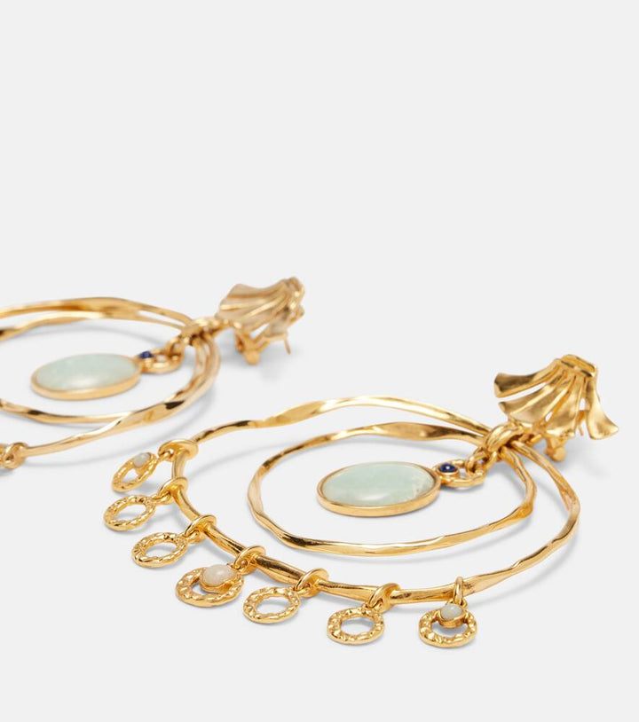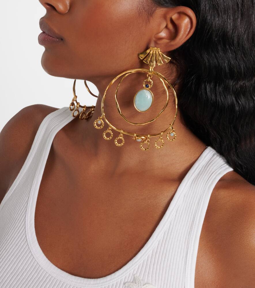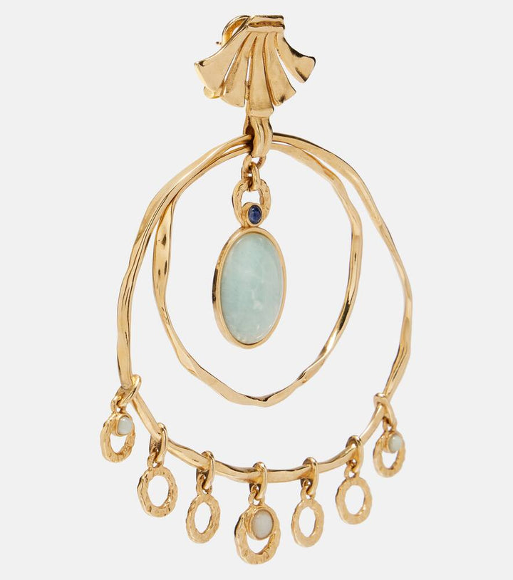 These Chloé Sunflower embellished drop earrings by Chloé are a beautiful and artistic expression of modern elegance. The earrings feature a whimsical sunflower design expertly crafted from brass and sodalite and amazonite. The pieces feel both organic and luxurious, a true statement of refined style. These earrings are a versatile accessory that can be worn for both everyday moments and special occasions, symbolizing a confident approach to style.