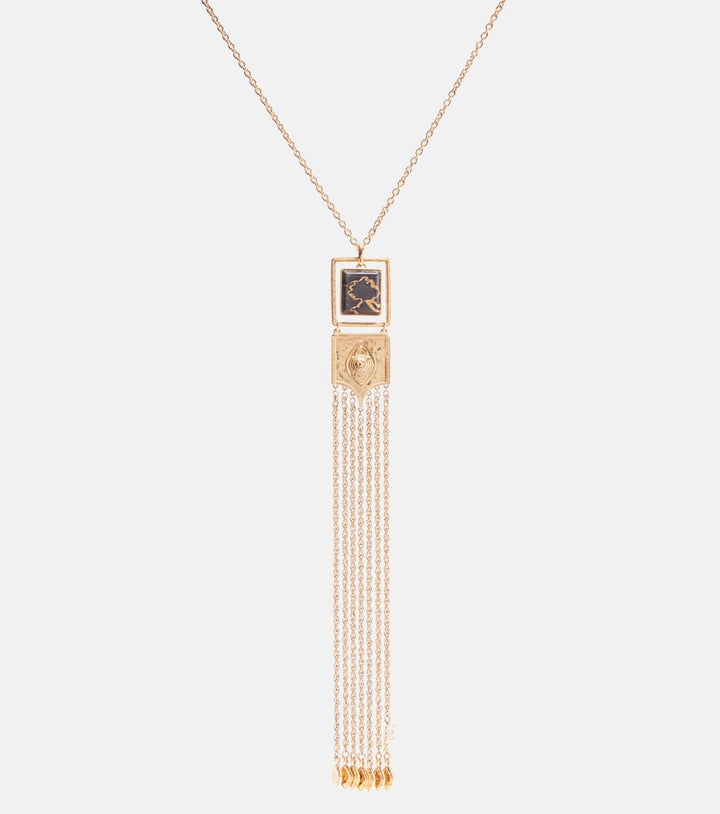 This Chloé Amulet pendant necklace by Chloé is a beautiful and artistic expression of modern elegance. The necklace features a long chain expertly crafted from brass, which holds a unique pendant. The piece feels both organic and luxurious, a true statement of refined style. This necklace is a versatile accessory that can be worn for both everyday moments and special occasions, symbolizing a confident approach to style.