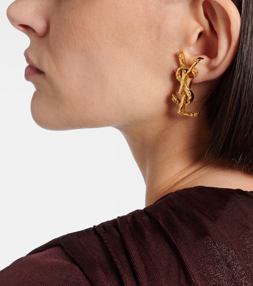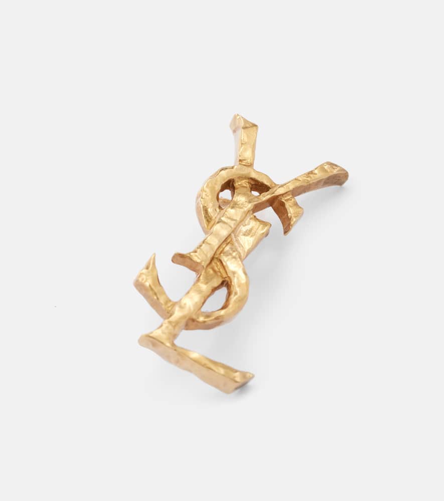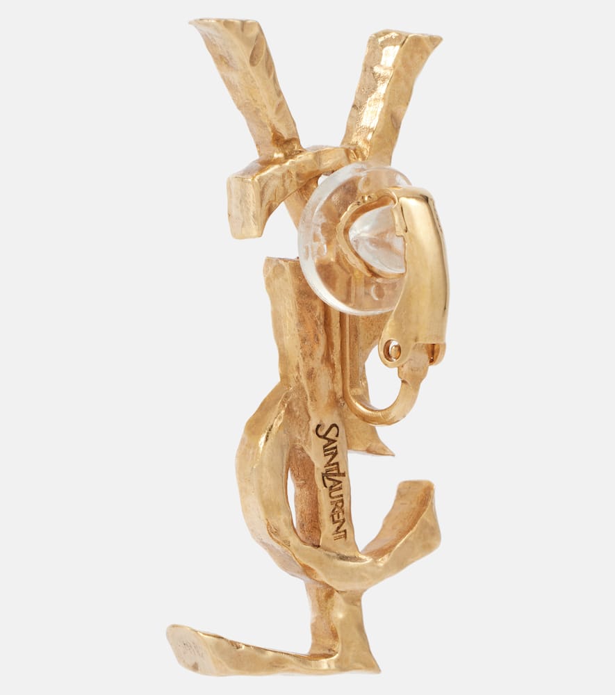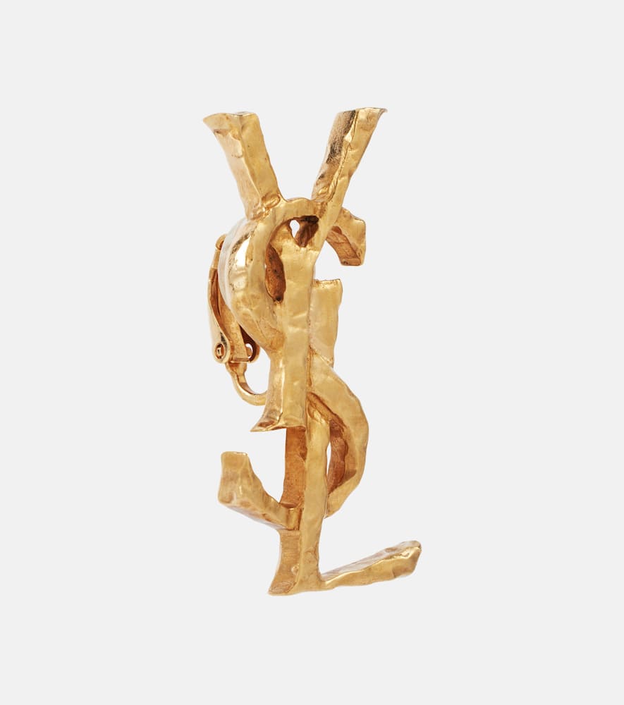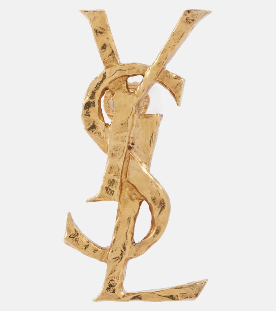 This Cassandre clip-on single earring by Saint Laurent is a bold and iconic accessory that embodies the brand's signature glamour. The sleek design, featuring the unmistakable Cassandre logo, is expertly crafted from brass. This single earring is a perfect statement piece for the modern woman who appreciates a blend of classic brand recognition and contemporary style. It is the ideal finishing touch to elevate any ensemble, from a simple daytime look to a sophisticated evening outfit.