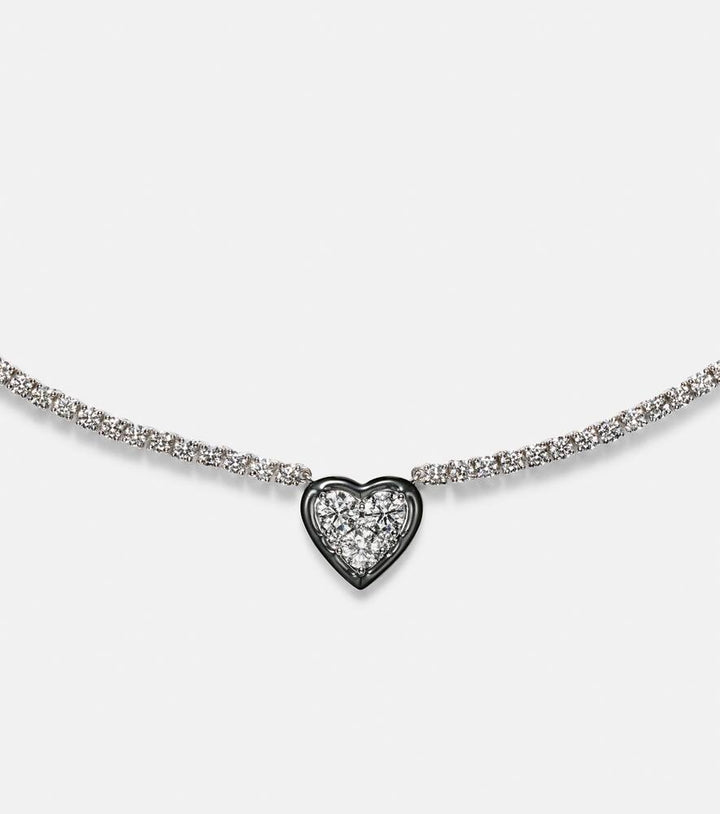 Heart 18kt white gold choker with diamonds