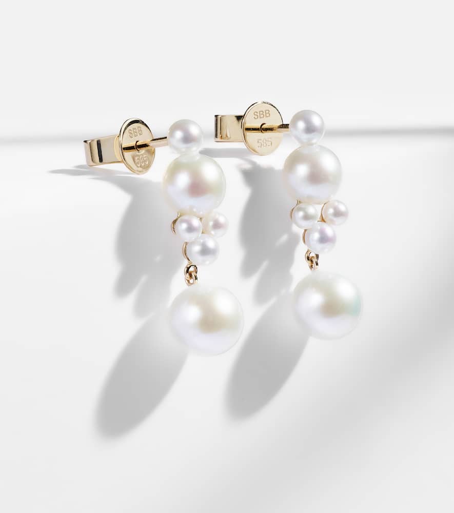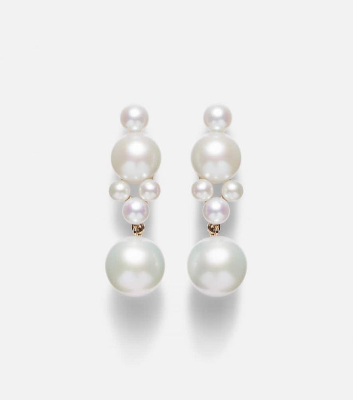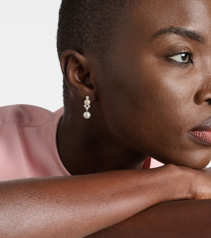 These Luna 14kt gold earrings with freshwater pearls by Sophie Bille Brahe are a beautiful and artistic expression of modern elegance. The earrings feature a delicate and fluid design, expertly crafted from 14kt yellow gold and adorned with a beautiful array of freshwater pearls. The piece feels both organic and luxurious, a true statement of refined style. These earrings are a versatile accessory that can be worn for both everyday moments and special occasions, symbolizing a confident approach to style.