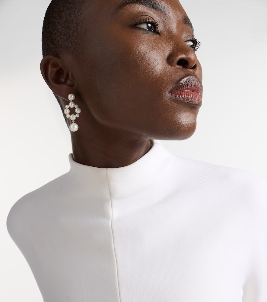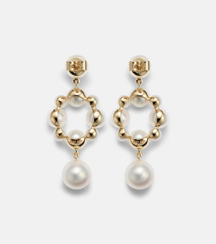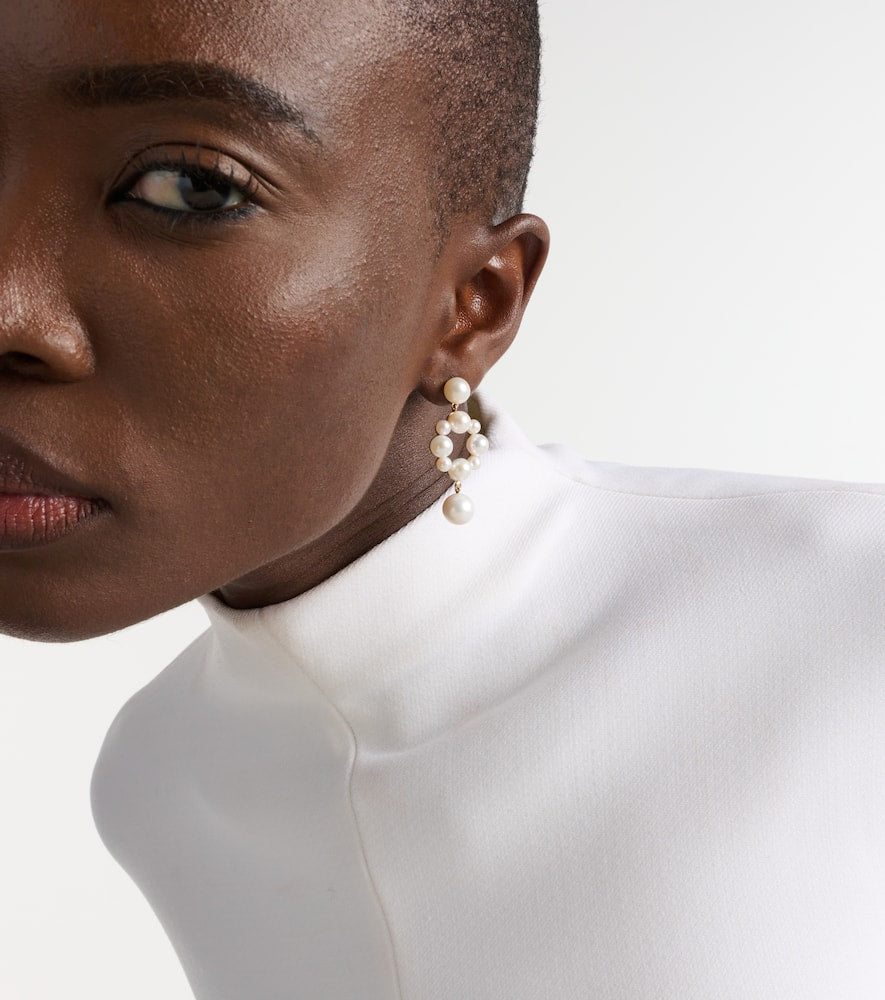 These 14kt gold earrings with freshwater pearls by Sophie Bille Brahe are a beautiful and artistic expression of modern elegance. The earrings feature a delicate and fluid design, expertly crafted from 14kt yellow gold and adorned with a beautiful array of freshwater pearls. The piece feels both organic and luxurious, a true statement of refined style. These earrings are a versatile accessory that can be worn for both everyday moments and special occasions, symbolizing a confident approach to style.