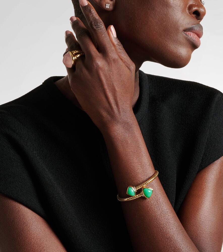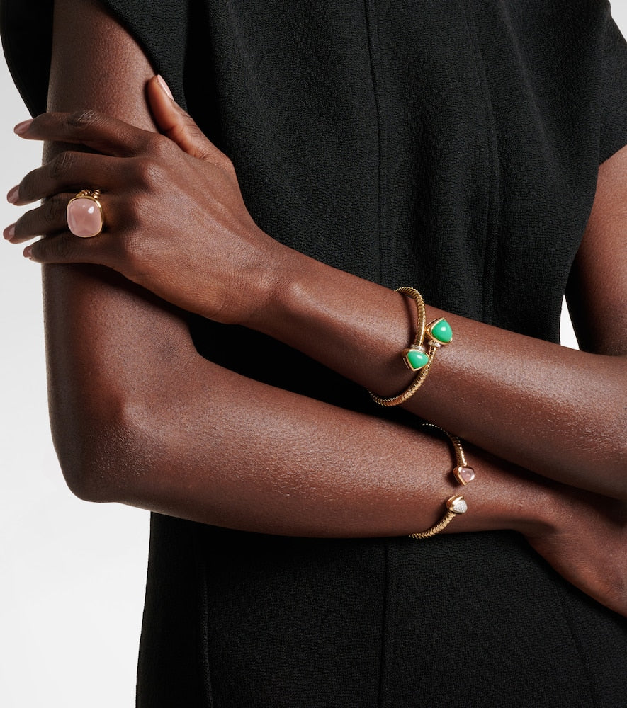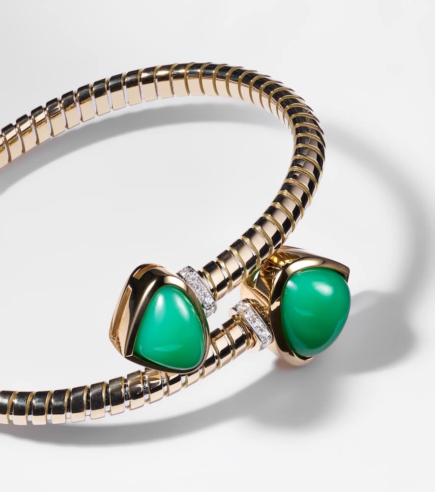 Trisolina Bypass 18kt gold cuff bracelet with diamonds and chrysoprase