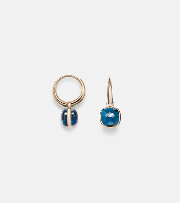 These Nudo Mini 18kt rose gold earrings with topazes by Pomellato are a beautiful and artistic expression of modern elegance. The earrings feature a delicate and fluid design, expertly crafted from 18kt rose gold and adorned with a beautiful array of cushion-cut blue topazes. The piece feels both organic and luxurious, a true statement of refined style. These earrings are a versatile accessory that can be worn for both everyday moments and special occasions, symbolizing a confident approach to style.