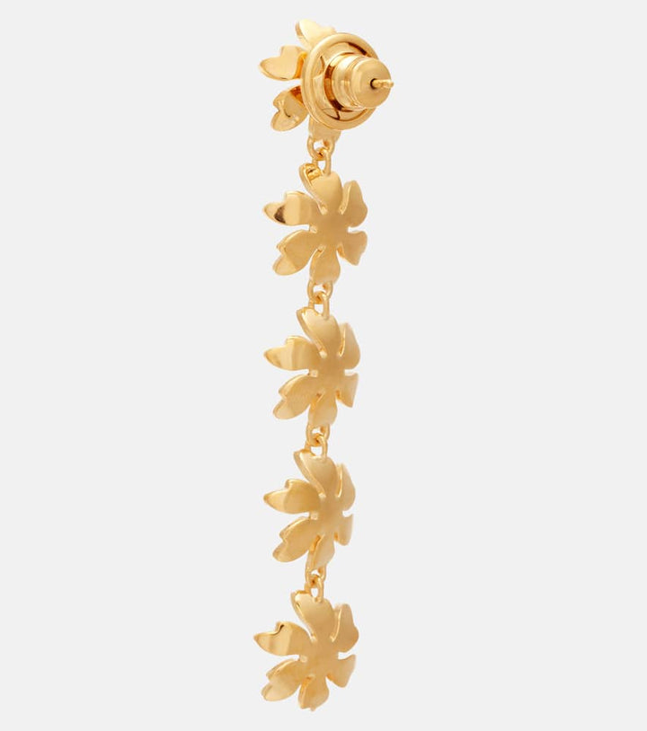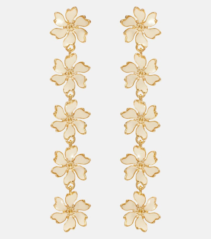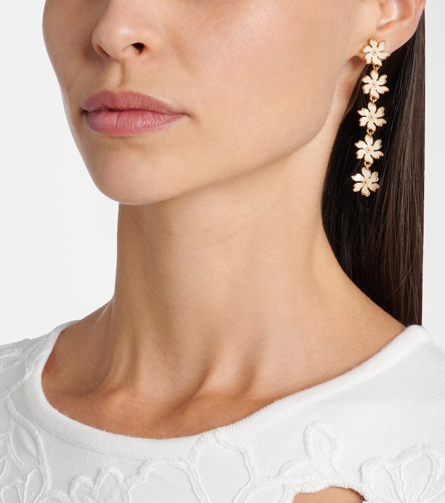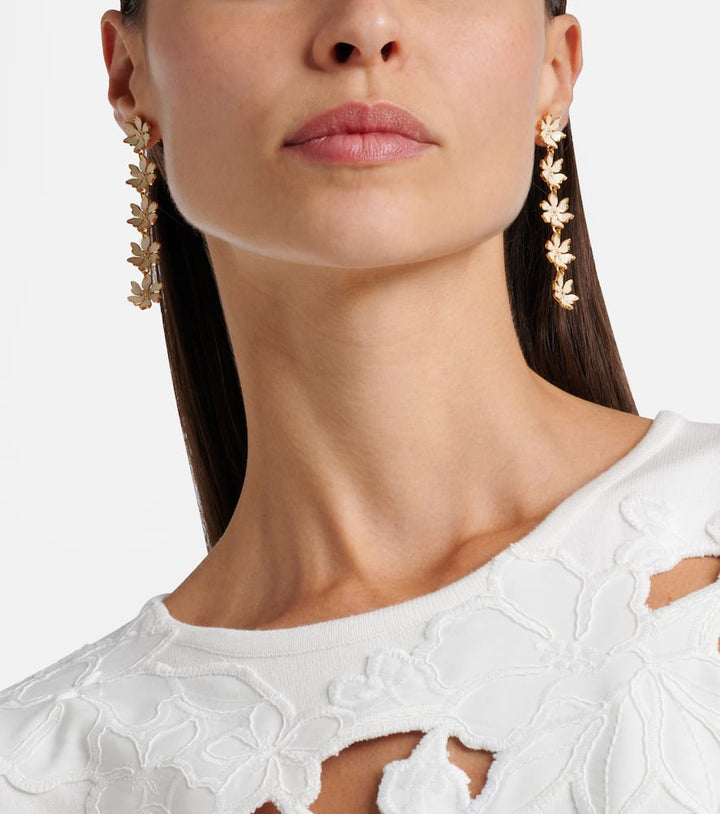 These Floral enamel drop earrings by Oscar de la Renta are a whimsical and playful piece that captures the essence of a bygone era of glamour. The earrings' delicate, floral form is expertly crafted from brass and enamel, creating a beautiful and intricate look. This piece feels both energetic and luxurious, a true statement of refined taste and a celebration of uncompromising quality. They are an accessory that symbolizes joyful elegance and a confident approach to style, perfect for a special occasion.