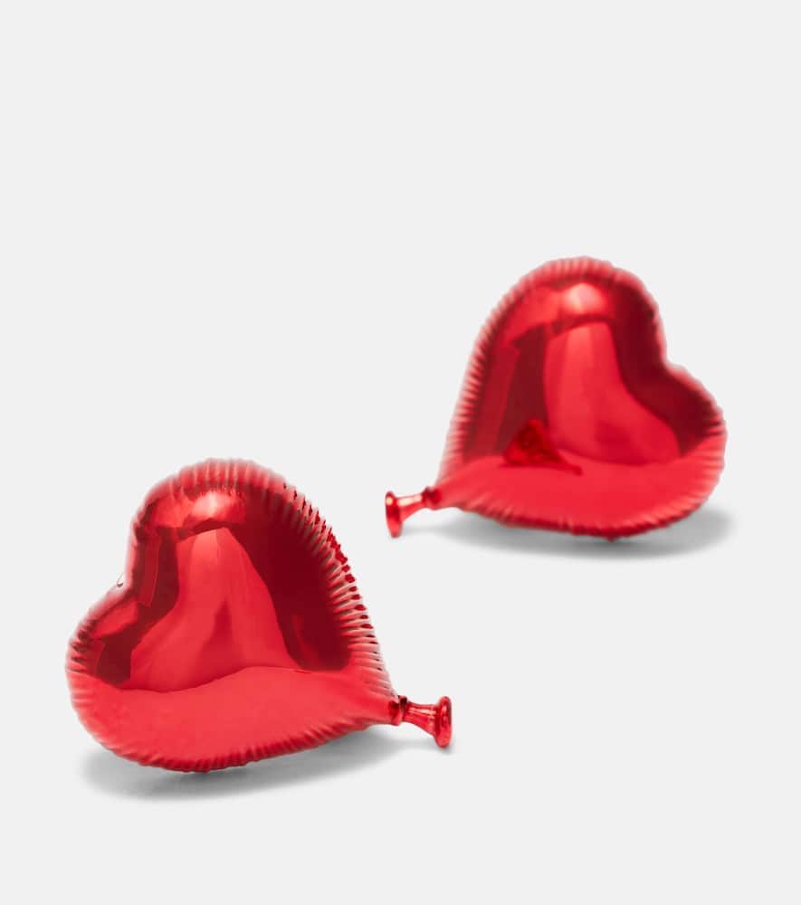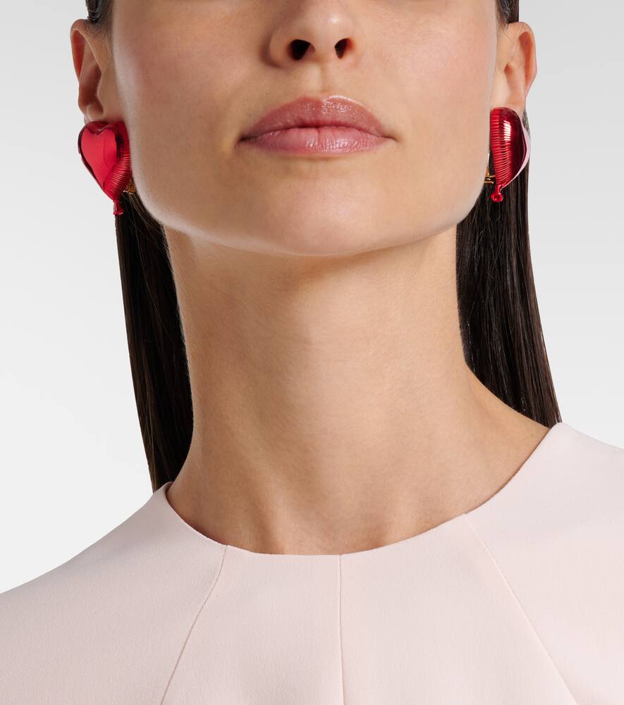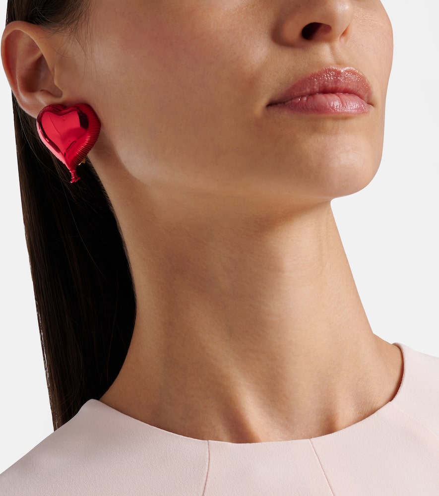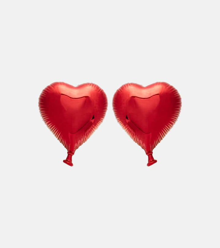 These Heart Balloon clip-on earrings by Oscar de la Renta are a whimsical and playful piece that captures the essence of a bygone era of glamour. The earrings' delicate, heart-shaped form is expertly crafted from red and gold-toned brass, creating a beautiful and intricate look. This piece feels both energetic and luxurious, a true statement of refined taste and a celebration of uncompromising quality. They are an accessory that symbolizes joyful elegance and a confident approach to style, perfect for a special occasion.