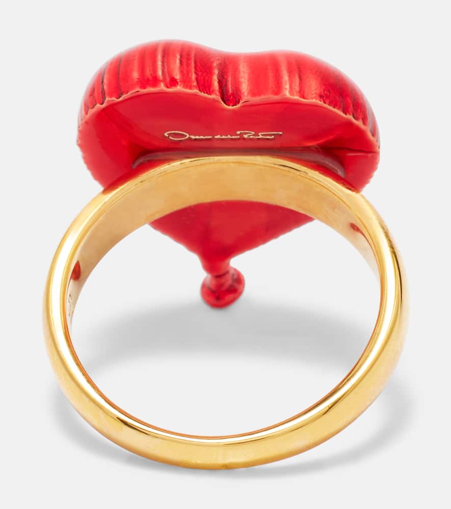 This Heart Balloon ring by Oscar de la Renta is a whimsical and playful piece that captures the essence of a bygone era of glamour. The ring's delicate, heart-shaped form is expertly crafted from red and gold-toned brass, creating a beautiful and intricate look. This piece feels both energetic and luxurious, a true statement of refined taste and a celebration of uncompromising quality. It is an accessory that symbolizes joyful elegance and a confident approach to style, perfect for a special occasion.