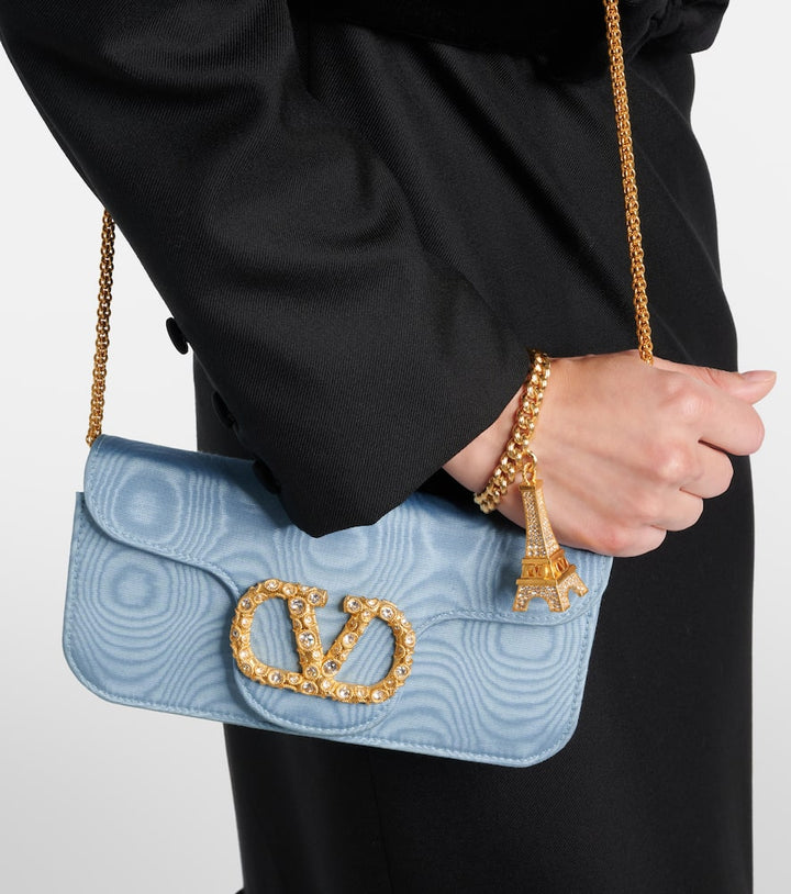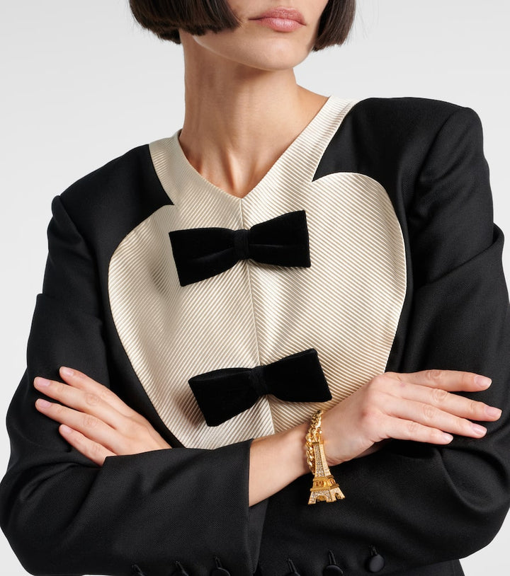 This Eiffeltower crystal-embellished bracelet by Valentino is a whimsical yet glamorous piece that captures the essence of Parisian chic. The bracelet features a delicate chain expertly crafted from brass, which holds a stunning Eiffel Tower charm. This is beautifully adorned with shimmering crystals, adding a luxurious sparkle. This piece feels both personal and luxurious, a true statement of refined taste and a celebration of life's most beautiful moments. It is an accessory that symbolizes joyful elegance and a confident approach to style.