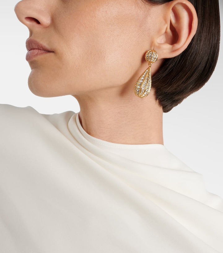 These Poetiques Des Gouttes drop earrings by Valentino are a beautiful and artistic expression of modern elegance. The earrings feature a delicate and fluid design, expertly crafted from bronze and adorned with a beautiful array of Swarovski crystals. The piece feels both organic and luxurious, a true statement of refined style. These earrings are a versatile accessory that can be worn for both everyday moments and special occasions, symbolizing a confident approach to style.