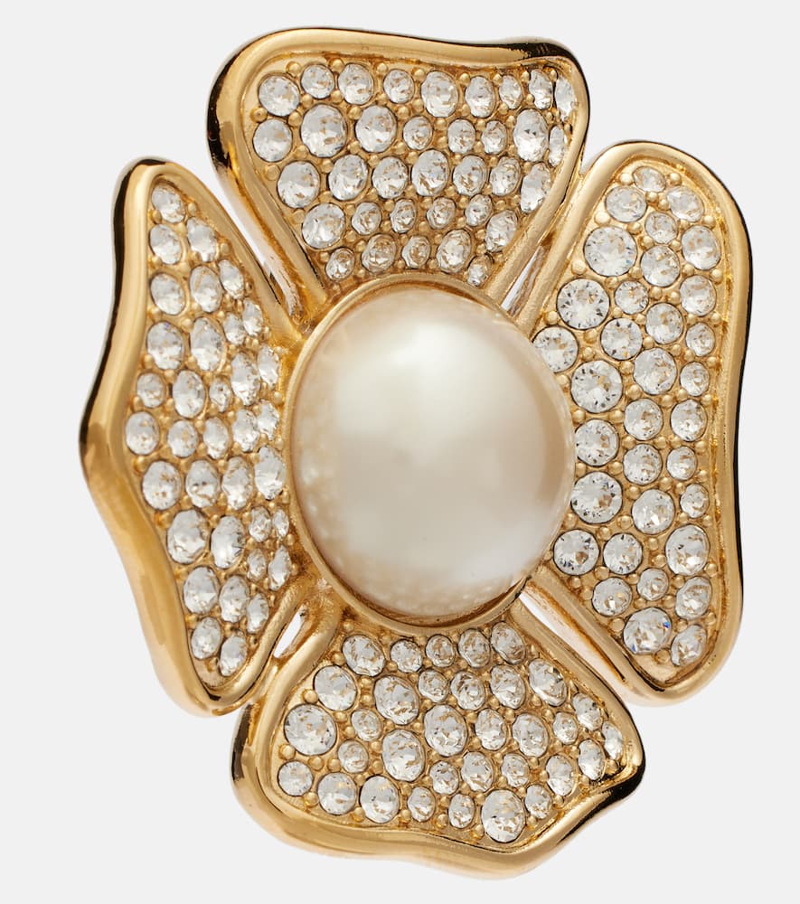 These earrings are made in Italy from 100% aluminum embellished with Swarovski crystals and faux pearls. They have a length of 5cm (2") and a width of 5cm (2").