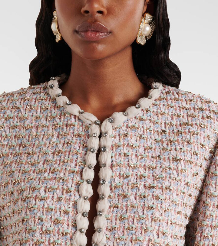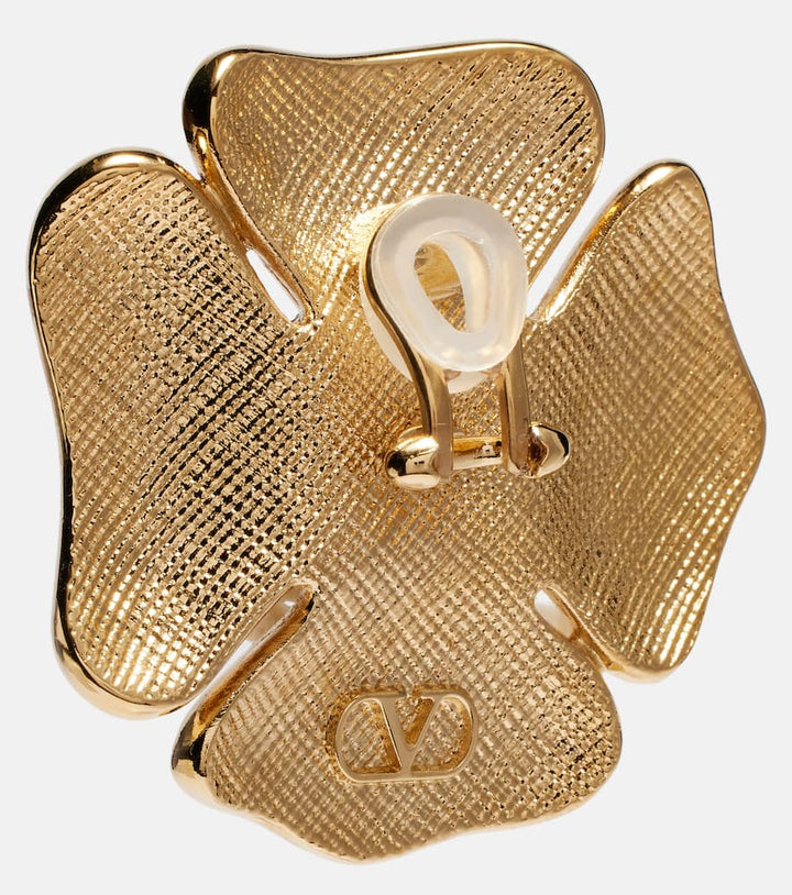 These San Fin Swarovski-embellished earrings by Valentino are a bold and iconic accessory that embodies the brand's signature glamour. The sleek design is finished with a stunning metal base and adorned with shimmering Swarovski crystals and faux pearls. These earrings are a perfect statement piece for the modern woman who appreciates a blend of classic brand recognition and contemporary sparkle. They are the ideal finishing touch to elevate any ensemble, from a simple daytime look to a sophisticated evening outfit.