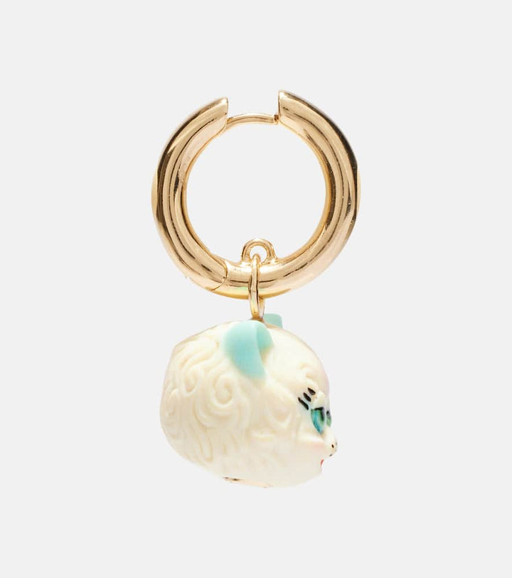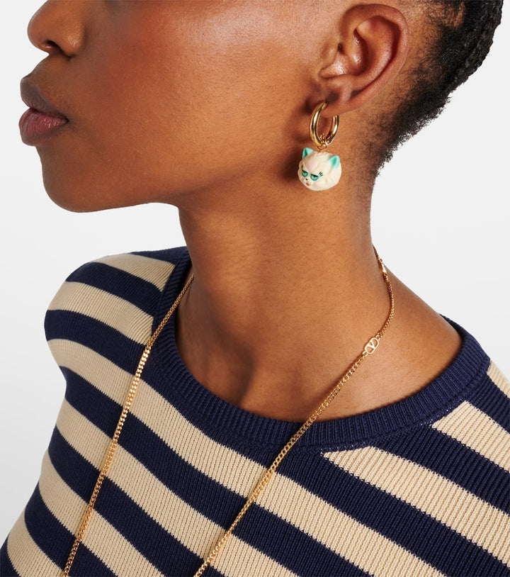 This Le Chat De La Maison single earring by Valentino is a whimsical yet glamorous piece that captures the essence of Parisian chic. The earring features a delicate cat charm expertly crafted from gold-plated brass and plastic. This piece feels both personal and luxurious, a true statement of refined taste and a celebration of life's most beautiful moments. It is an accessory that symbolizes joyful elegance and a confident approach to style.