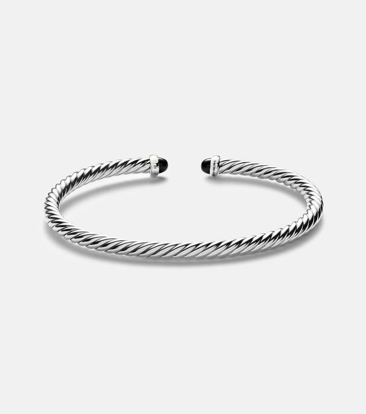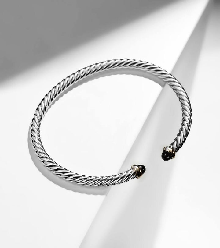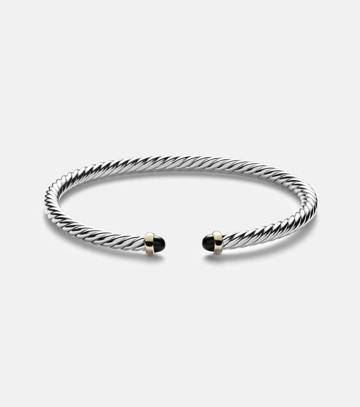 Cable Flex sterling silver and 14kt gold cuff bracelet with onyxes
