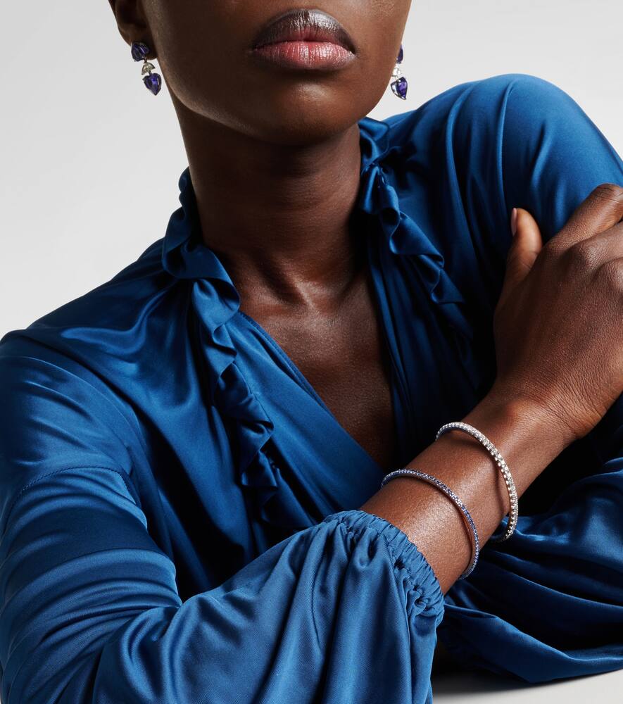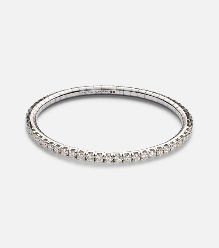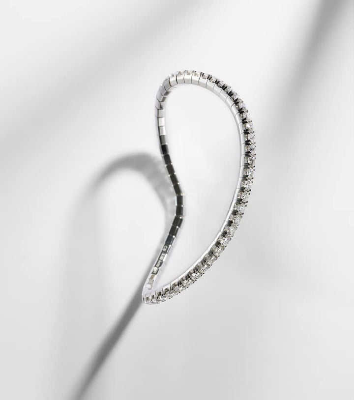 This bracelet is handcrafted from 18kt white gold and features 59 natural, round-cut diamonds in a prong setting, with a G color grade and VS clarity grade, totaling 5.5ctw. The elasticated band has a width of 3mm (0.1") and a circumference of 16.5cm (6.5").