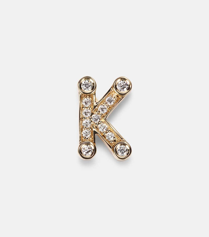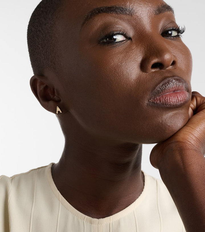 This Initial Petite 18kt gold single earring with diamonds by Sophie Bille Brahe is a beautiful expression of personalized, understated luxury. The delicate initial, crafted from warm 18kt yellow gold, is adorned with a pavé of diamonds, adding a subtle touch of brilliance. This single earring is perfect for creating an asymmetric, modern look. It is a piece that feels both personal and timeless, making it an ideal gift or a cherished addition to a jewelry collection, symbolizing identity and personal story.