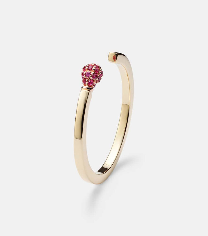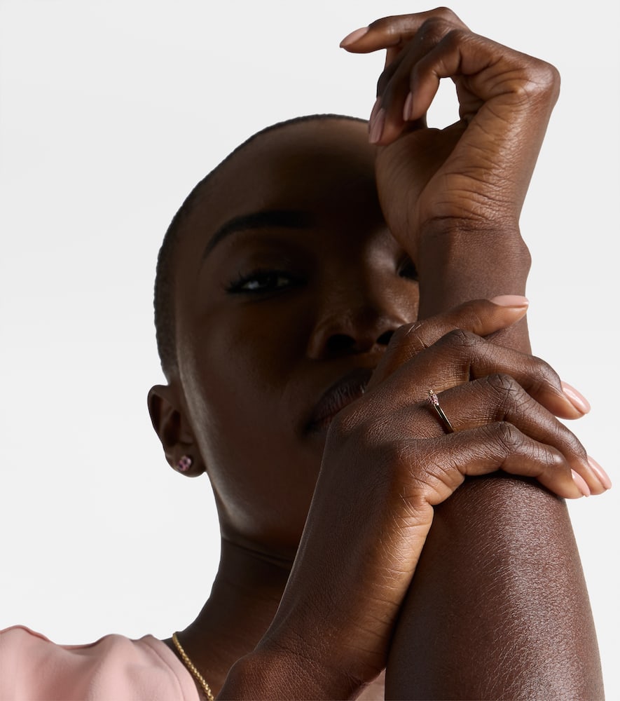 This Match 14kt gold ring with rubies by Sydney Evan is a beautiful and unique piece that brings together modern design and vibrant color. The ring features a continuous pavé of rich, red rubies, creating a band of passionate brilliance. The minimalist design allows the stones to take center stage, making it a perfect piece for stacking or wearing on its own. It’s a powerful symbol of love, passion, and vitality, adding a luxurious and fiery accent to your hand.