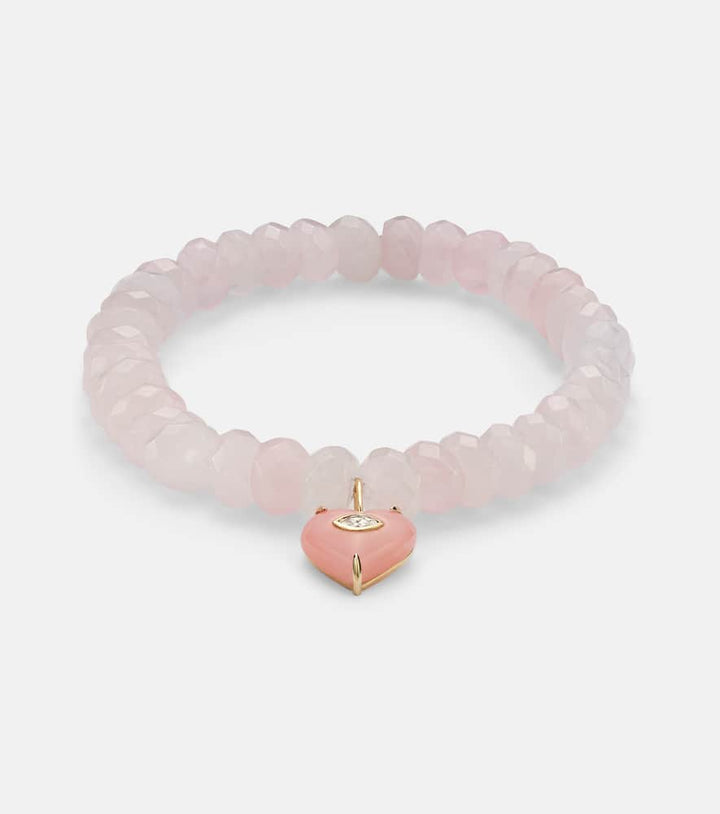 This 14kt gold bracelet with opal and diamond by Sydney Evan is a beautiful piece that merges bohemian charm with luxurious detail. The stunning pink opal, with its iridescent glow, is the focal point, complemented by a single, brilliant diamond. The bracelet's elasticated band makes it comfortable and effortless to wear every day. It’s a piece that symbolizes inner beauty and creativity, adding a touch of artistic luxury to any look.