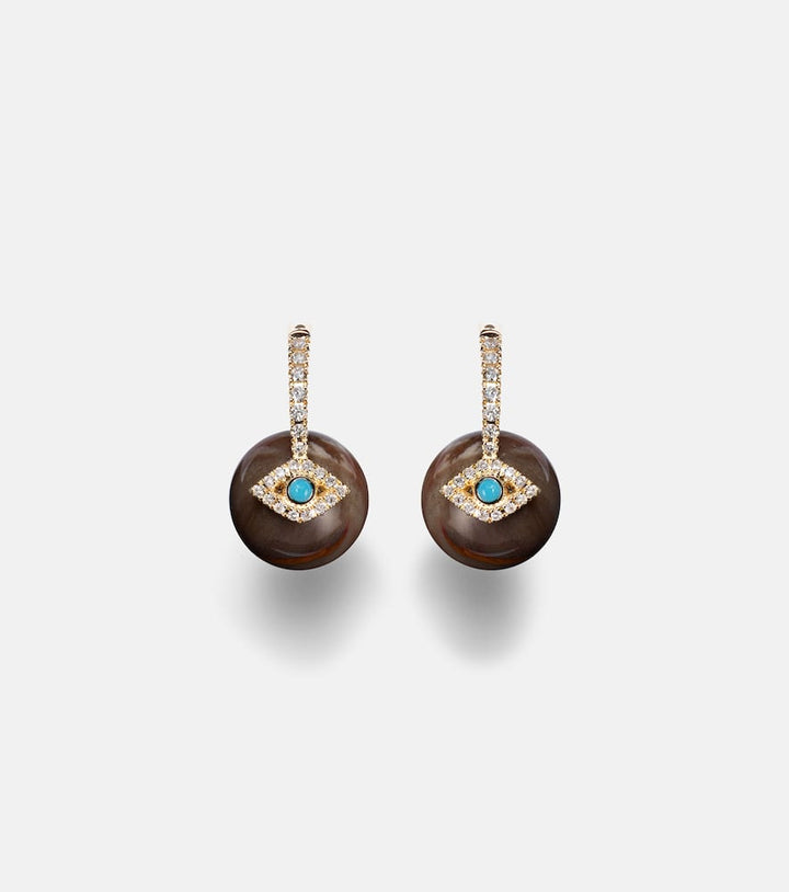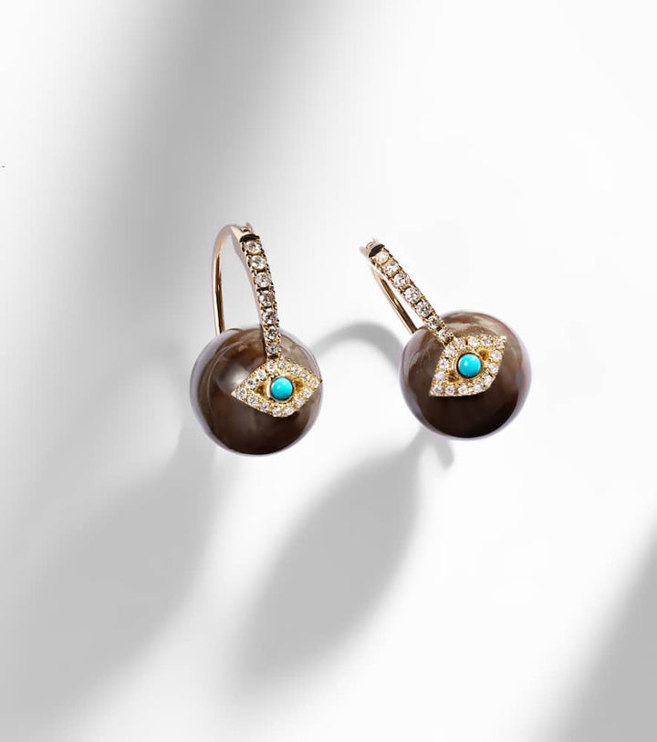 Evil Eye 14kt gold earrings with diamonds and turquoise