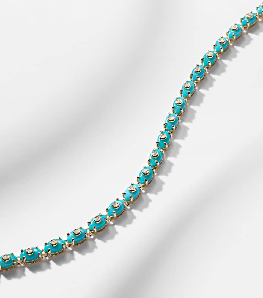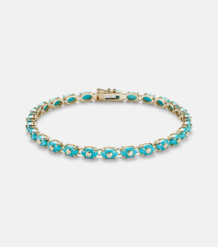 Eternity 14kt gold bracelet with turquoise and diamonds
