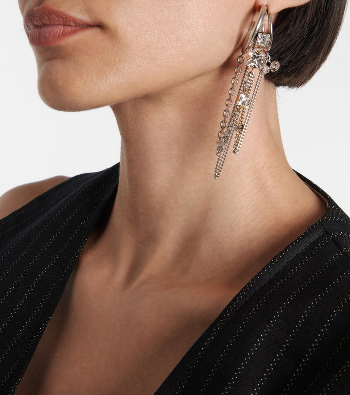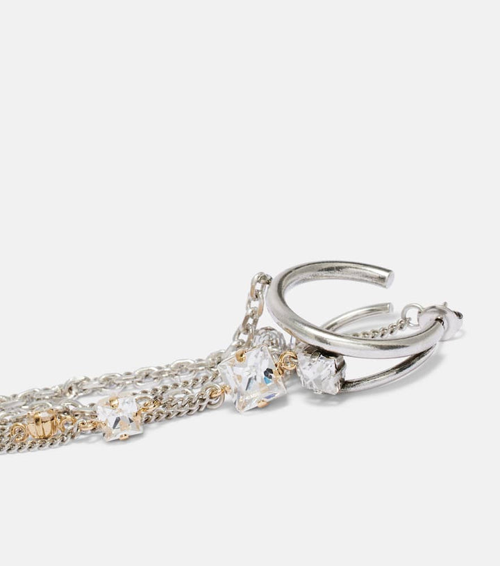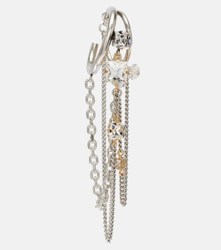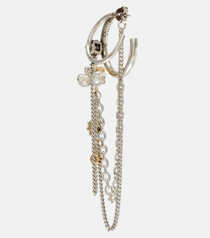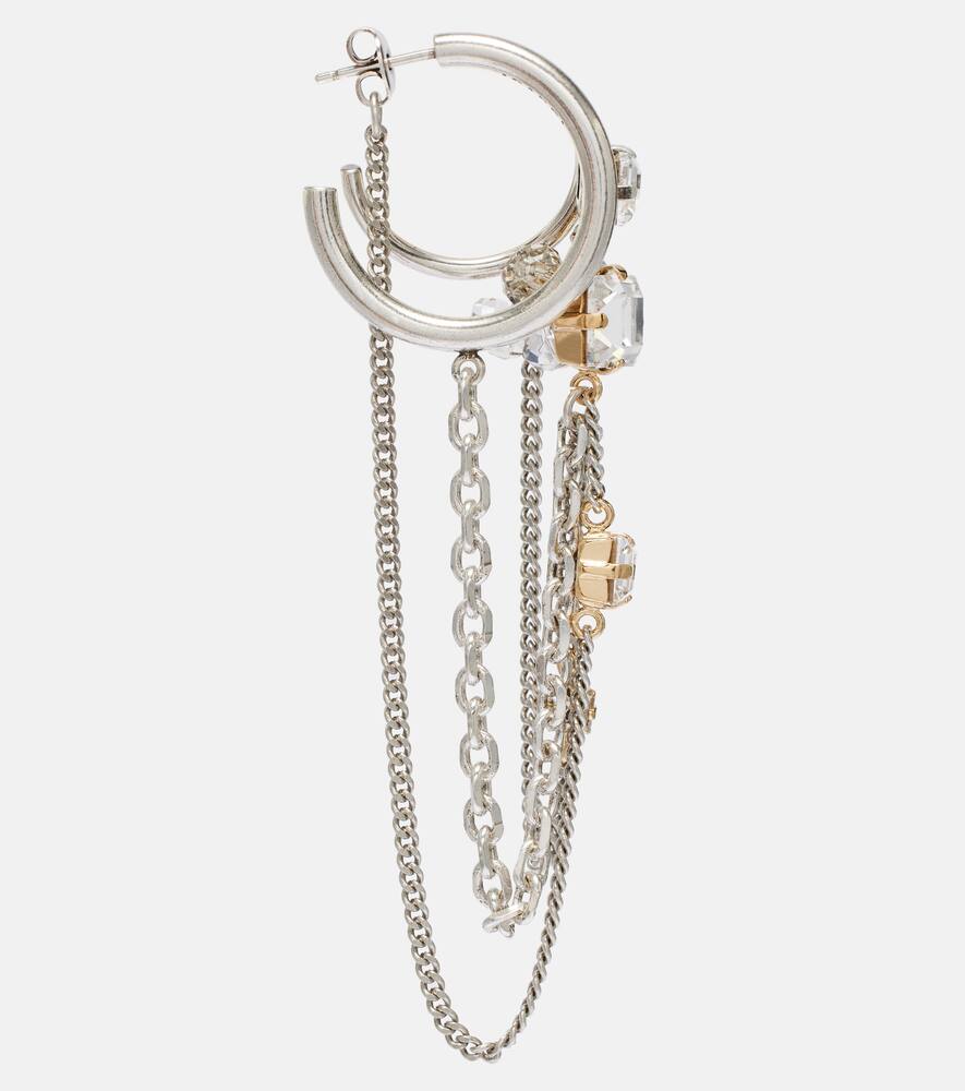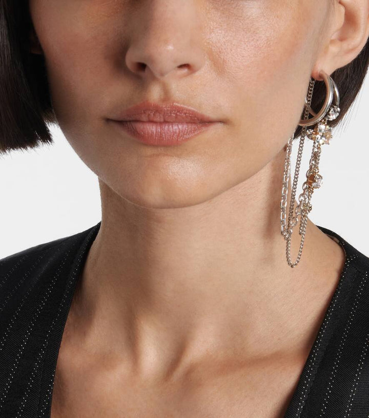 This Embellished single hoop earring by Isabel Marant is a bold and artistic statement piece. The oversized silver-toned hoop, adorned with sparkling glass, creates a captivating and dramatic silhouette. The single earring is a powerful trend that allows for a unique, asymmetric look. It is a testament to the brand's ability to blend classic forms with an edgy, contemporary aesthetic. This piece is perfect for the woman who loves to experiment with her style and make a memorable impression.