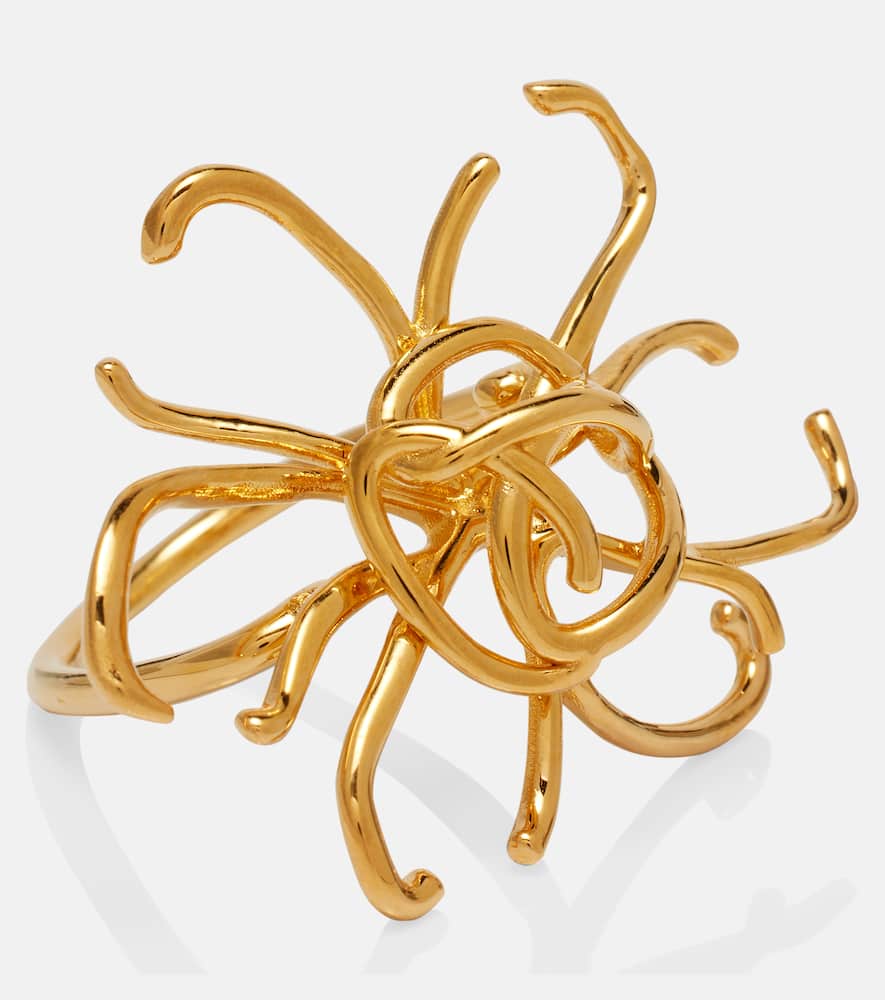 This Threaded Flower ring by Oscar de la Renta is a stunning and artistic piece that captures the essence of bohemian romance. The intricate threaded flower design, crafted from gold-toned brass, creates a beautiful and textural form. The ring feels both organic and luxurious, perfect for adding a unique and expressive touch to your hand. It is a symbol of natural beauty and confident style, designed for the woman who appreciates jewelry as a form of creative expression.
