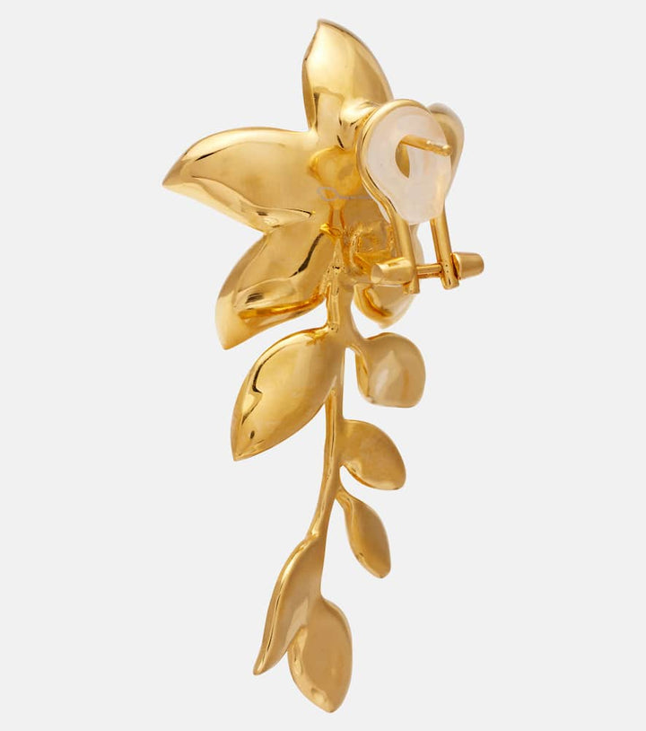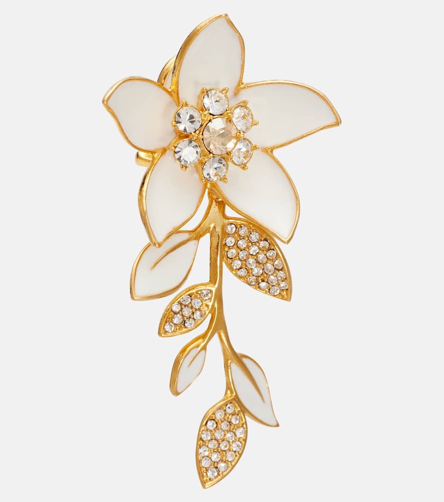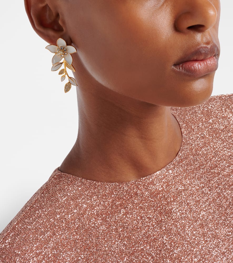 These Jasmine Vine embellished enamel earrings by Oscar de la Renta are a captivating accessory that blends natural beauty with sophisticated craftsmanship. The intricate jasmine vine motif, adorned with delicate enamel and crystal details, creates a beautiful and timeless piece. The earrings feel both romantic and luxurious, perfect for adding a touch of feminine elegance to any look. They are a symbol of grace and enduring beauty, designed for the woman who appreciates fine, artful accessories.