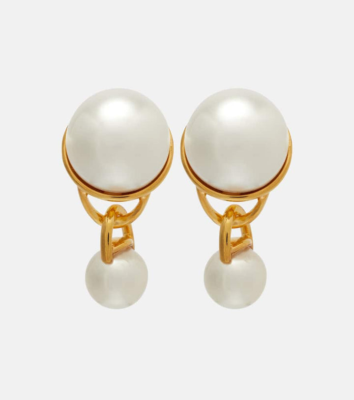 Made in Italy from 98% brass and 2% plastic pearls, these earrings have a length of 3.5cm (1.5") and a max. width of 1.5cm (0.5").