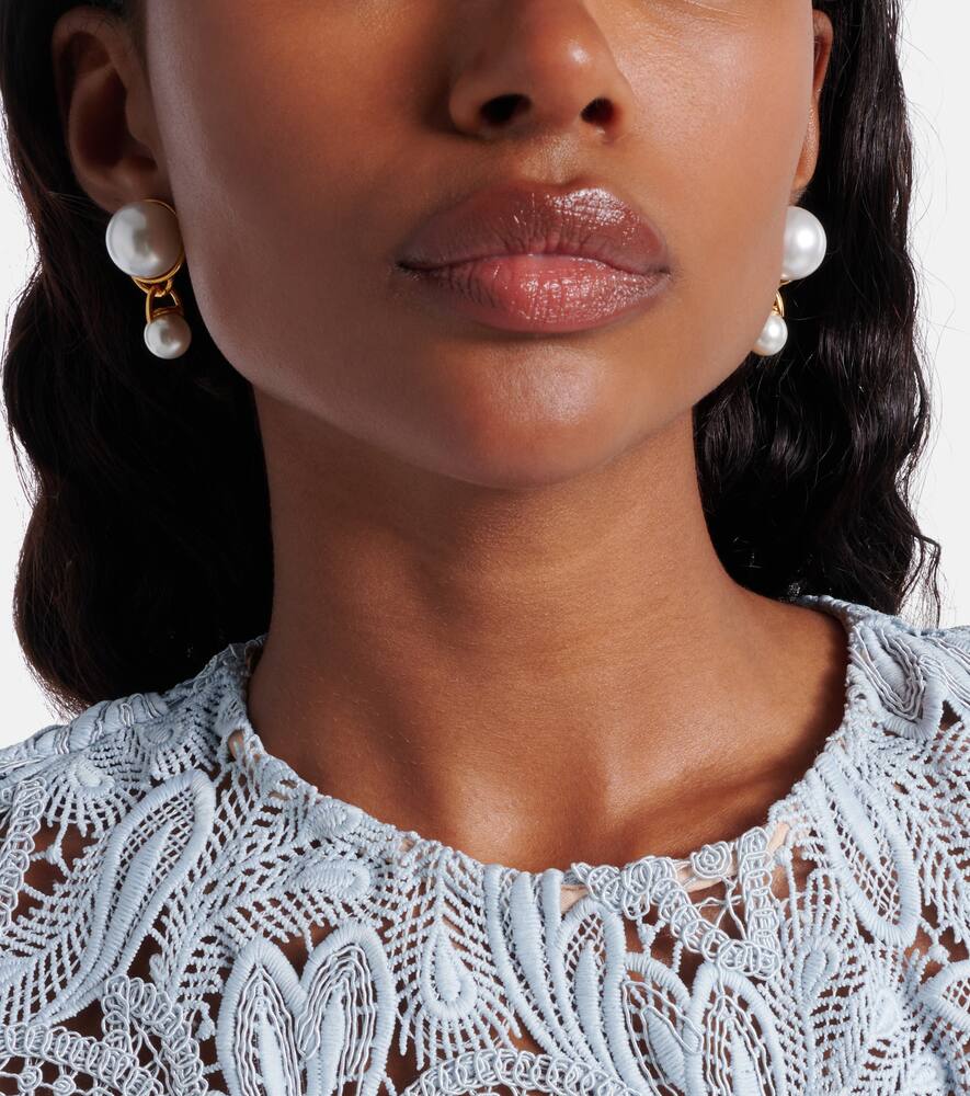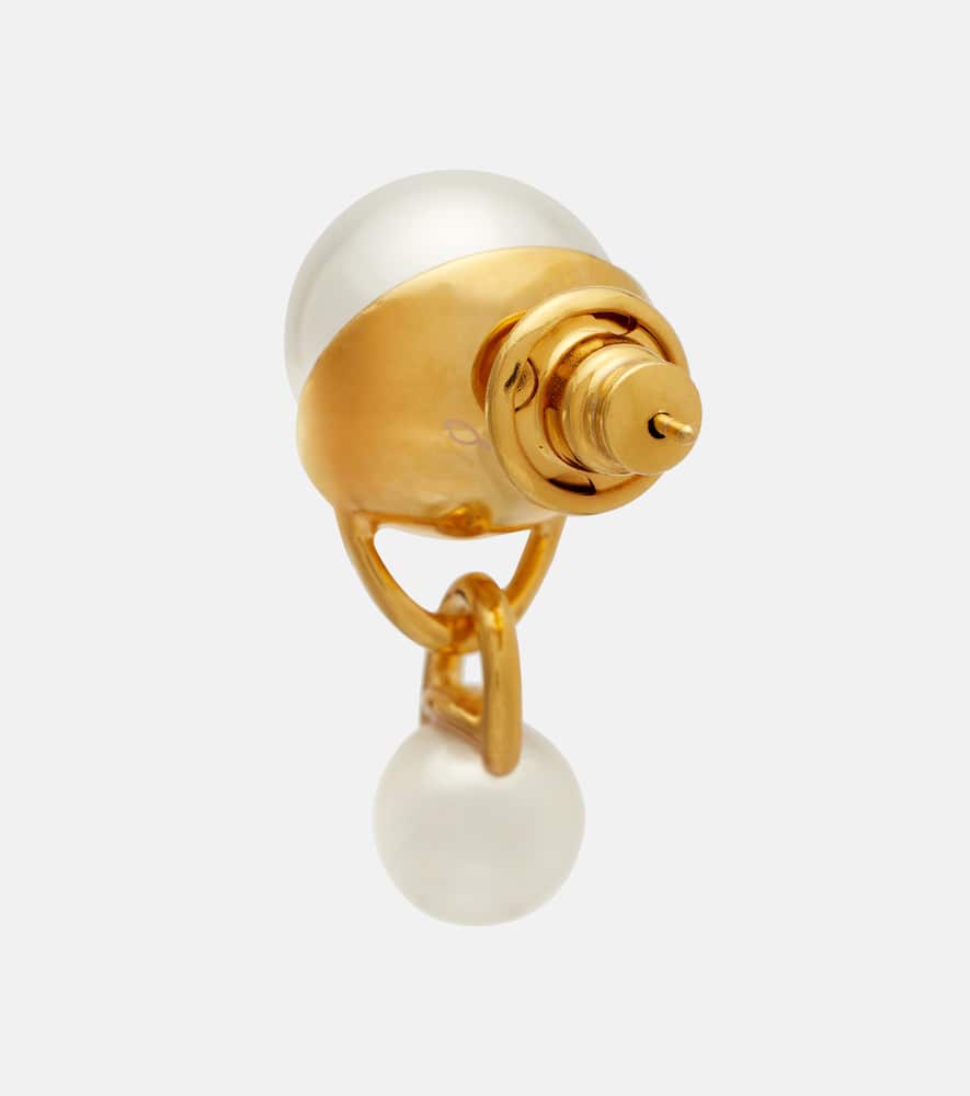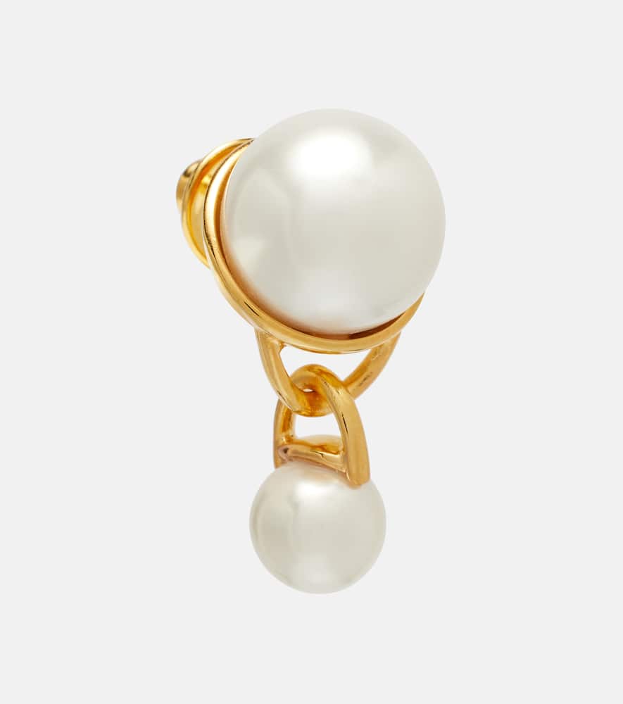 These Faux pearl drop earrings by Oscar de la Renta are a truly graceful and elegant accessory. The simple yet sophisticated drop design, featuring lustrous faux pearls, creates a beautiful, fluid silhouette. The earrings have a classic and timeless vibe, perfect for adding a touch of refined luxury to an evening or bridal look. They are a symbol of understated glamour and enduring beauty, a cherished piece that can be worn for any special occasion.