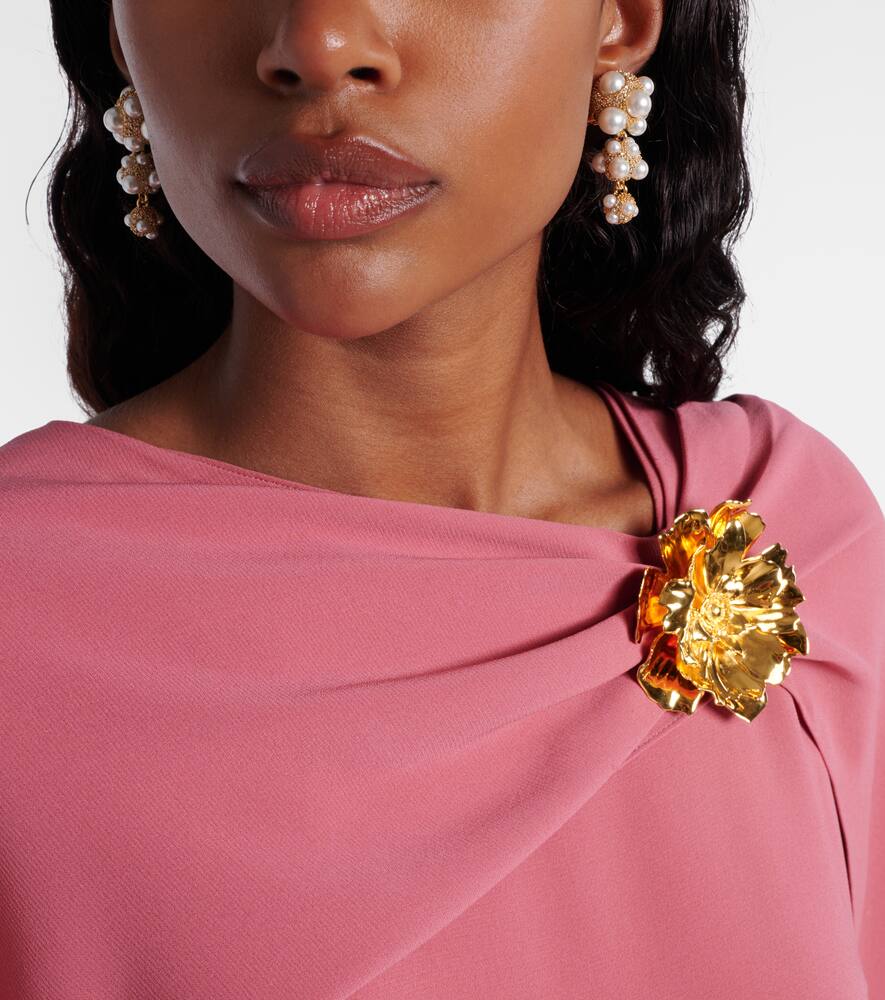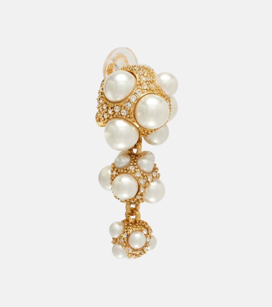 These Embellished clip-on earrings by Oscar de la Renta are a stunning work of art that captures the essence of glamorous sophistication. The intricate design, adorned with sparkling crystals and lustrous faux pearls, creates a captivating focal point. The earrings have an opulent and dramatic vibe, perfect for making a statement without the need for pierced ears. They are a testament to the brand's heritage of creating luxurious and unforgettable accessories.
