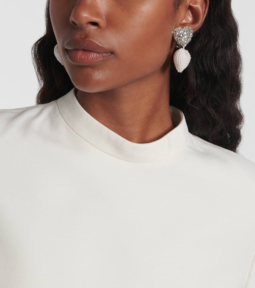 These Crystal-embellished clip-on earrings by Oscar de la Renta are a truly magnificent and luxurious accessory. The intricate, floral-inspired design is adorned with a dazzling array of glass, plastic, and resin, creating a beautiful and multi-dimensional sparkle. The earrings have an opulent and high-fashion vibe, perfect for adding a touch of dramatic glamour to any evening look. They are a statement of confident style and a testament to exquisite craftsmanship.