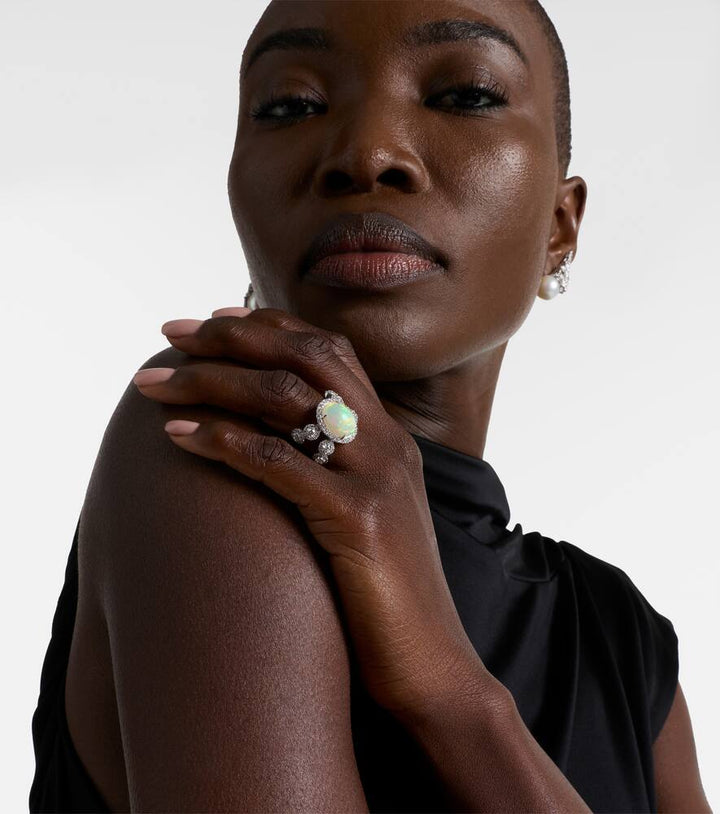 Reign Supreme 18kt white gold ring with diamonds and opal