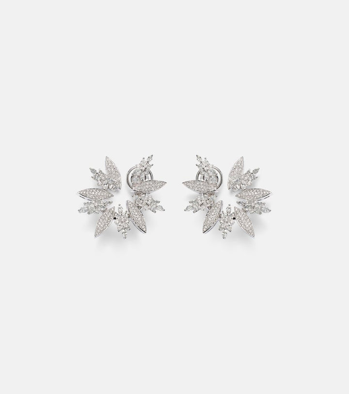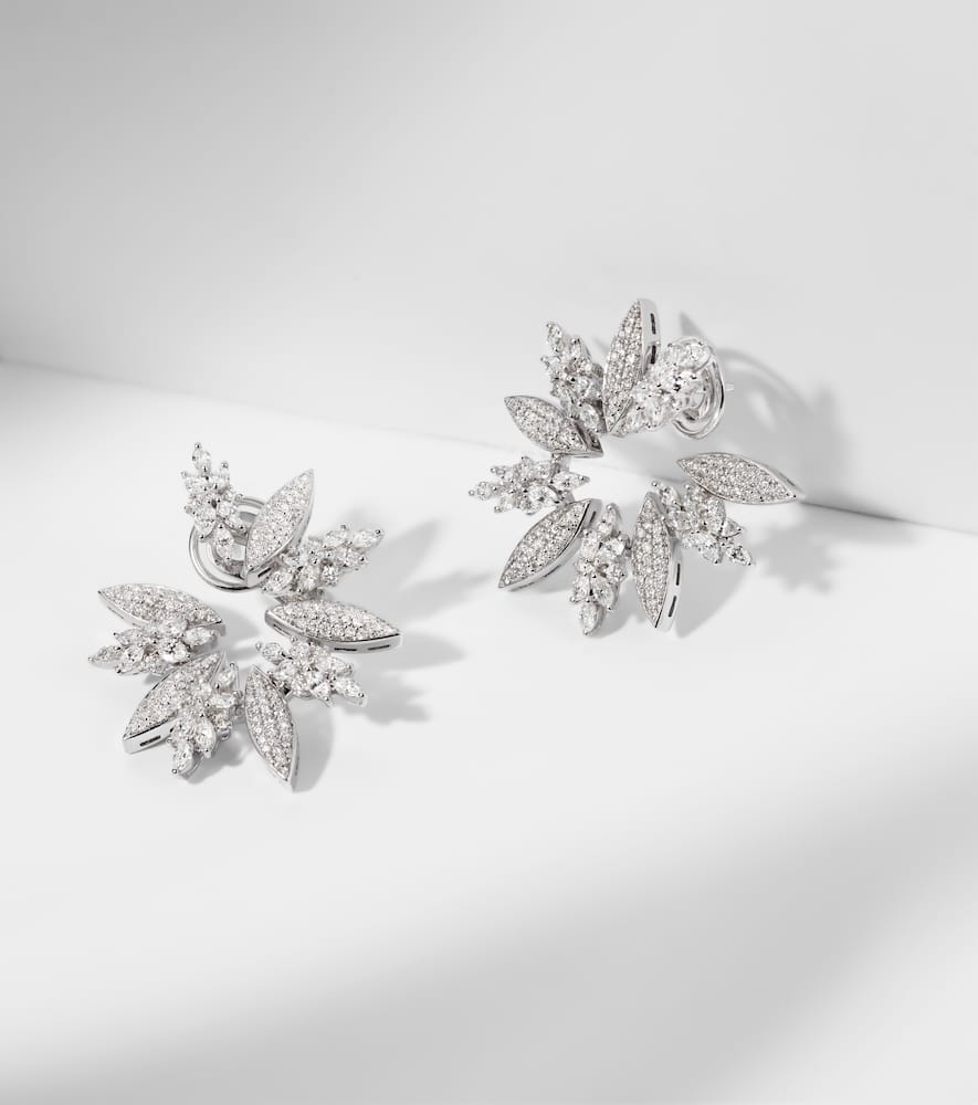 Handcrafted in Lebanon from 18kt white gold, these earrings feature 320 natural, round-cut and marquise-cut diamonds in a prong setting with a VVS-VS clarity and F-G color grade, totaling 5.51ct. They are for pierced ears, have a length of 35mm (1.4"), and a max. width of 33mm (1.3").