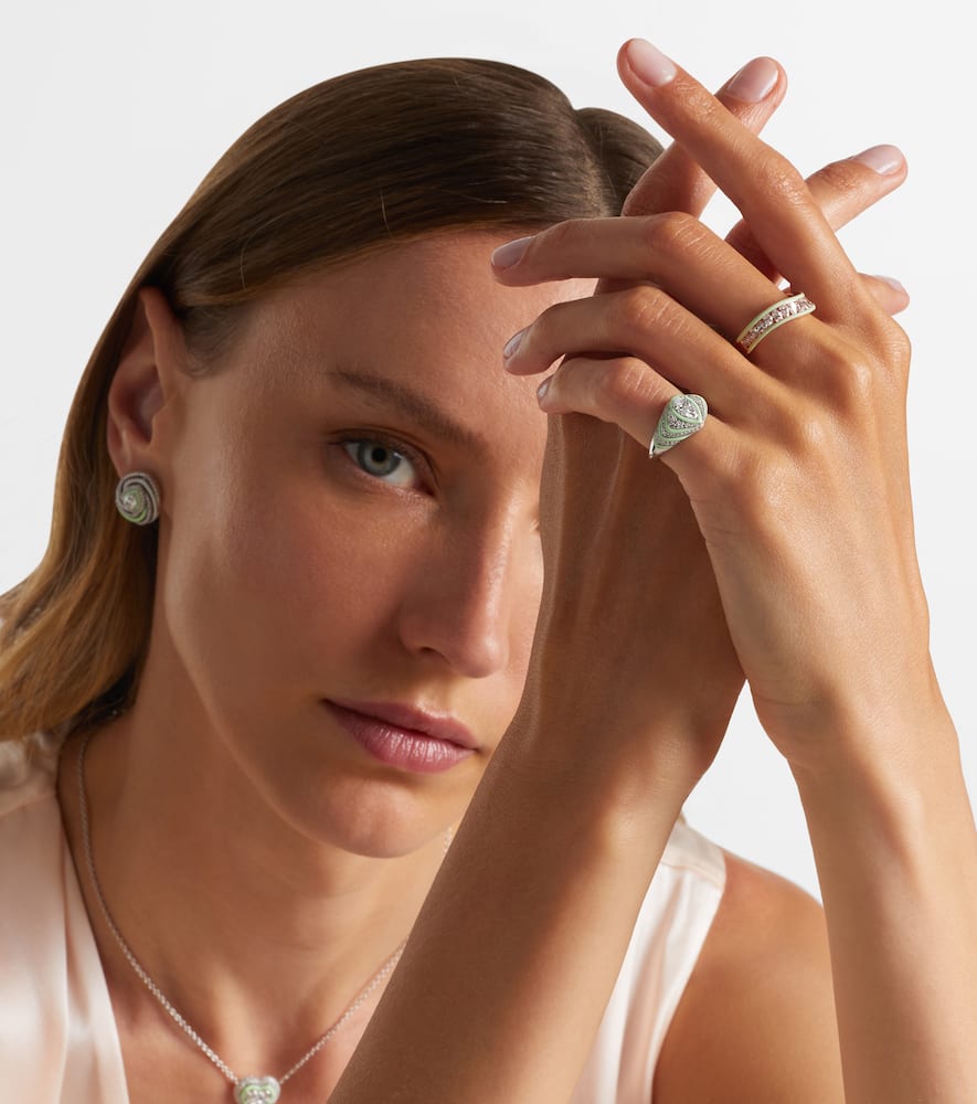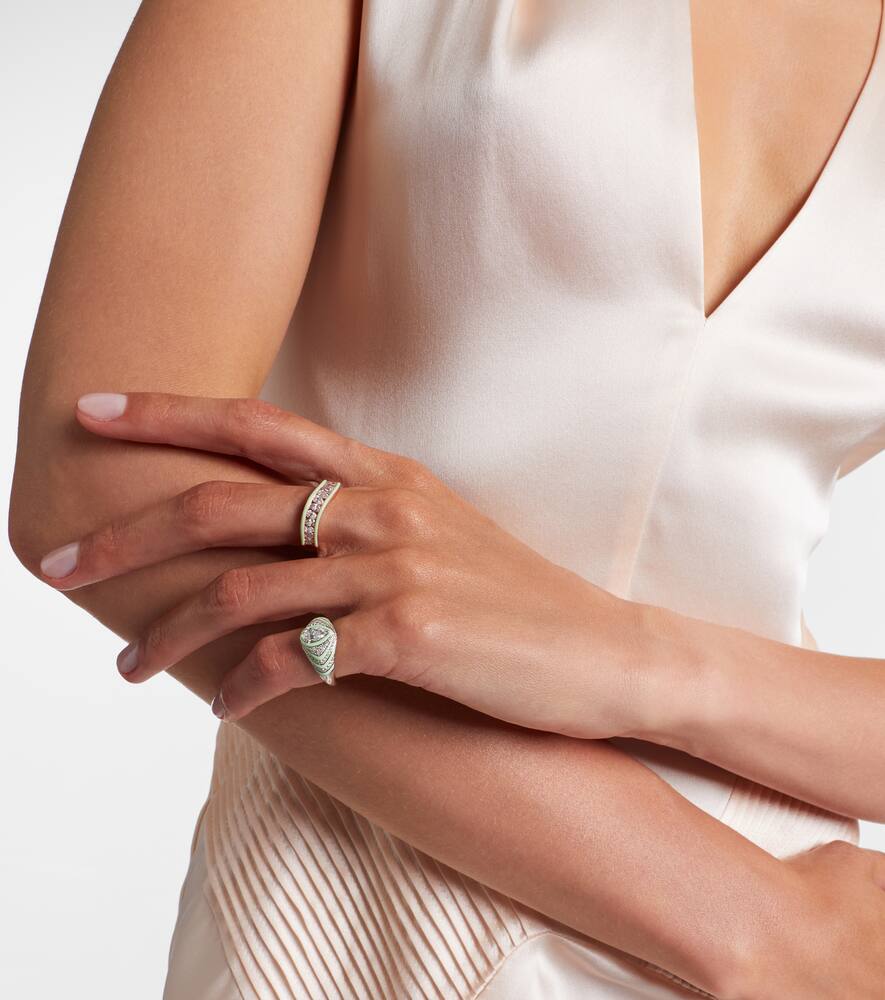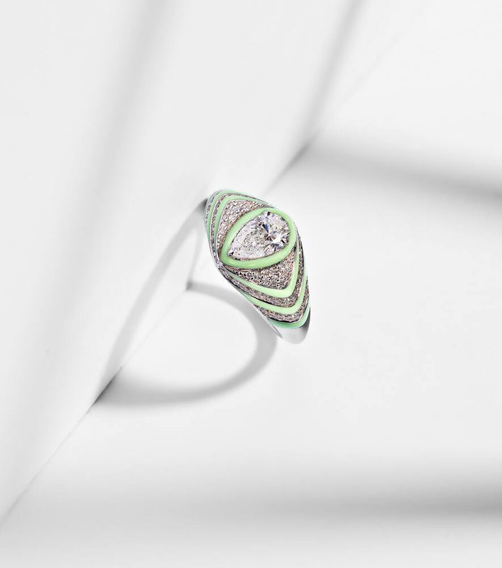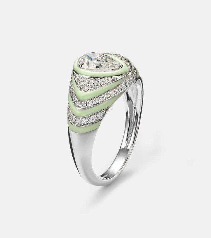 Striped Pear 18kt white gold and enamel pinky ring with diamonds