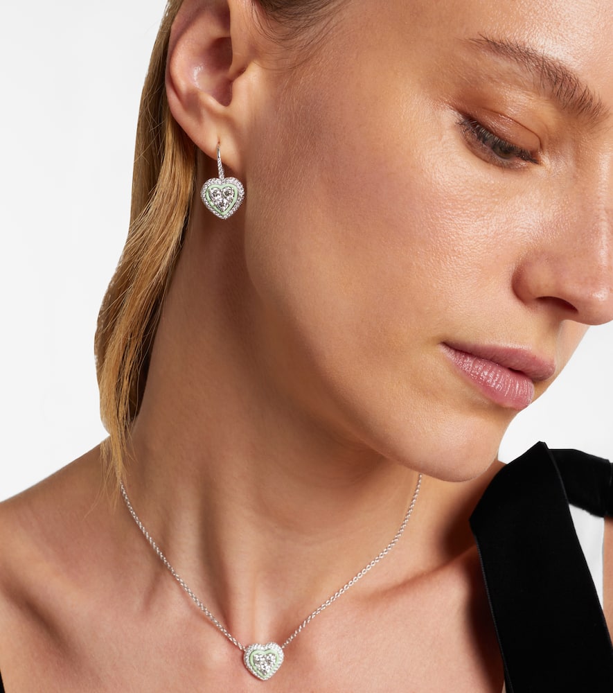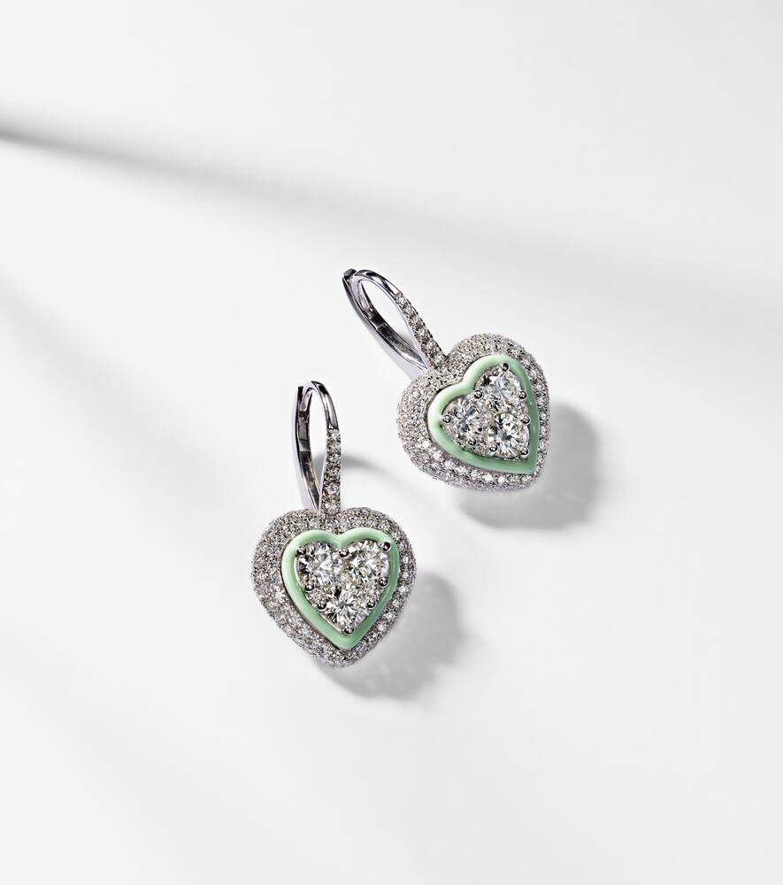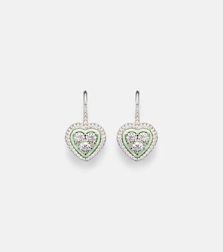 These 18kt white gold earrings with enamel and diamonds by Kamyen are a bold and striking statement. Made in India from 18kt white gold, these earrings feature a pendant with enamel and 2.44 carats of diamonds. The design is a celebration of a confident and fearless approach to style and is perfect for adding a touch of high-end drama to your look. They are a versatile staple that you will love for years to come.