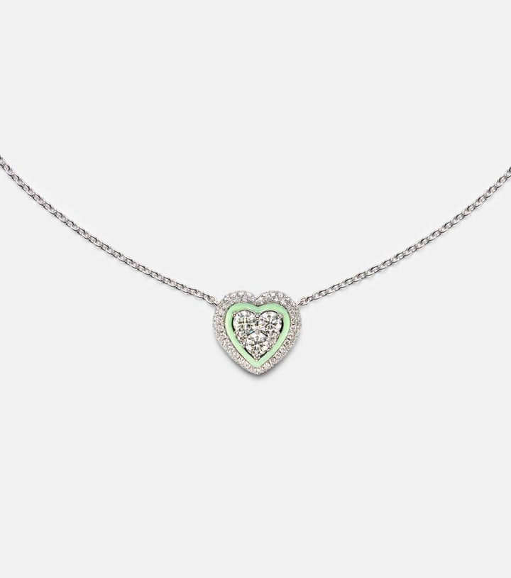 This 18kt white gold necklace with diamonds by Kamyen is a modern and minimalist piece. Made in India from 18kt white gold, this necklace features a sleek chain adorned with a heart-shaped diamond with a total carat weight of 1.16. The design is a beautiful blend of a timeless aesthetic and modern luxury, perfect for adding a touch of refined sparkle to your daily look. It can be worn on its own for a subtle statement or layered with other pieces for a bolder, more personalized style.
