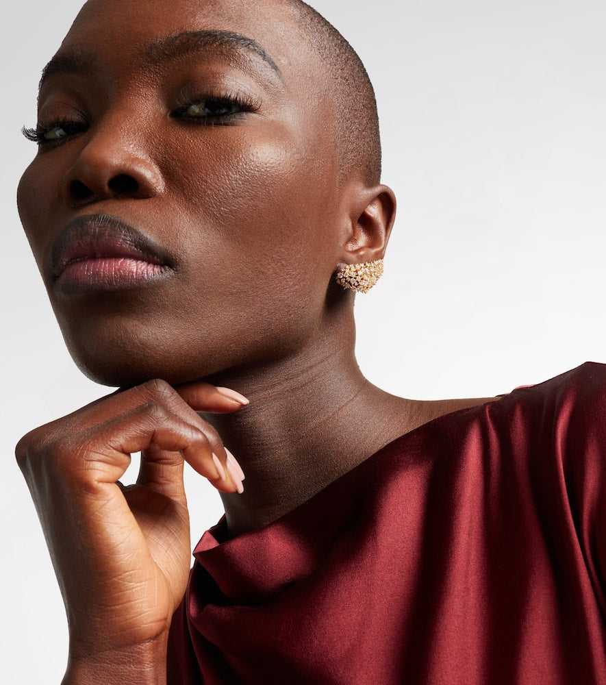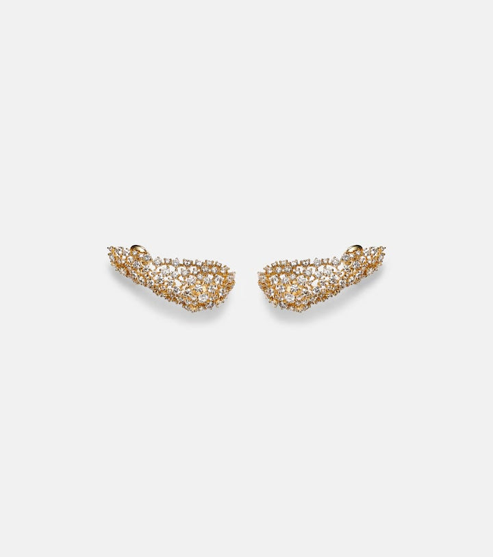 These Scatter 18kt gold earrings with diamonds by Ananya are a magnificent and opulent statement. Made in India from 18kt yellow gold, these earrings are a breathtaking masterpiece, combining the beautiful luster of gold with the brilliant sparkle of 4.9 carats of diamonds. The design is a celebration of a sophisticated and graceful style and is perfect for adding a touch of high-end glamour to your look. They are a versatile staple that you will love for years to come.