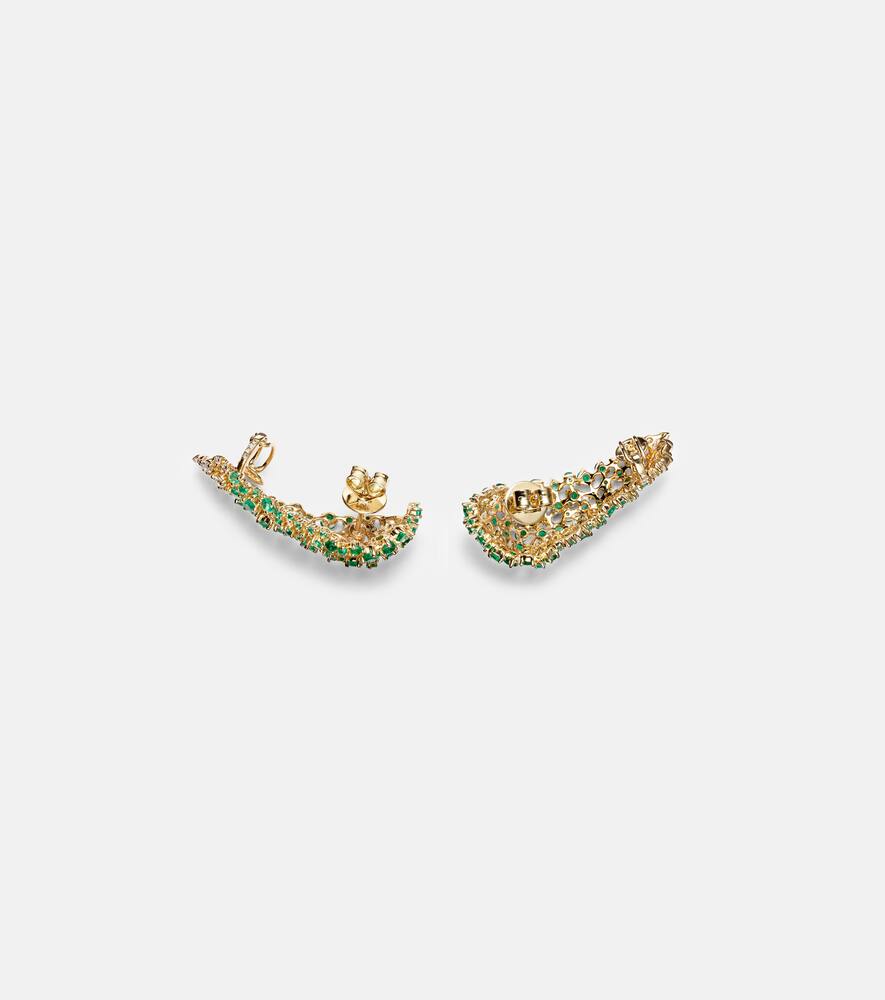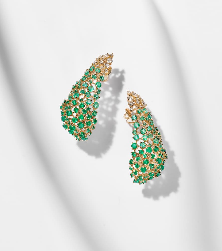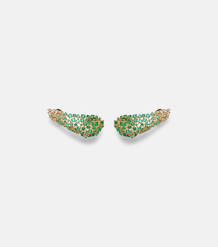 Scatter 18kt gold earrings with emeralds and diamonds