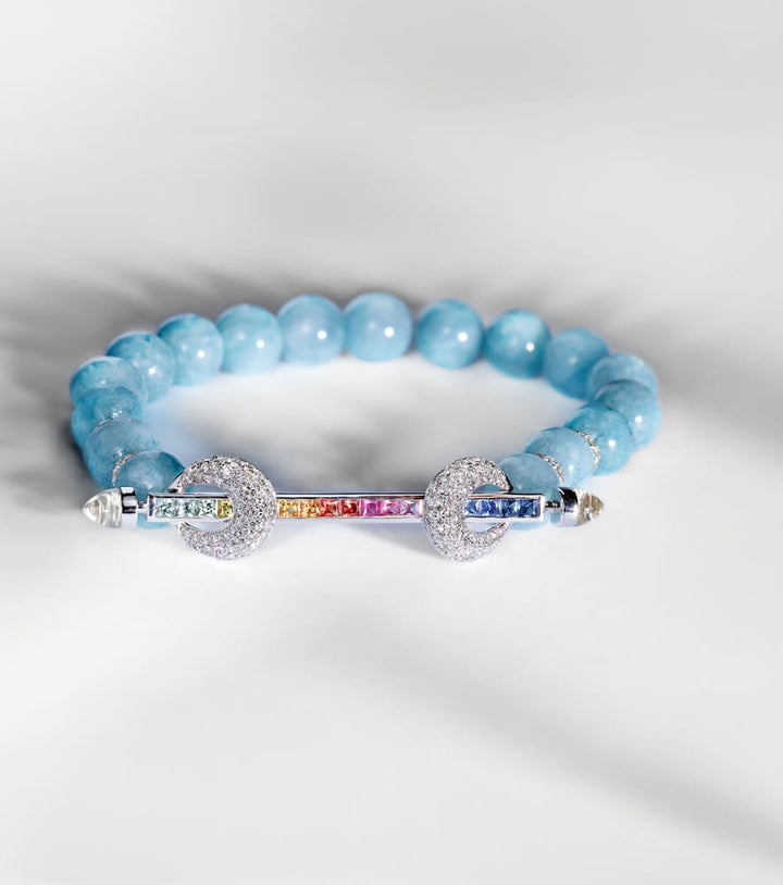 Chakra 18kt white gold bracelet with sapphires, diamonds, and gemstones