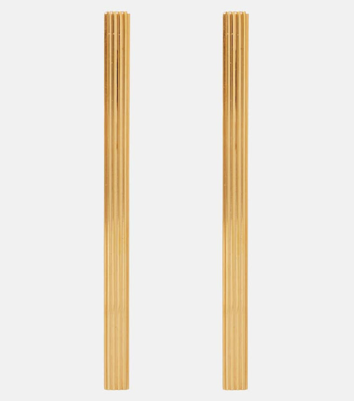 These earrings are made in Italy from 18kt gold-plated brass. They have a length of 8.5cm (3.5") and a width of 0.5cm (0").