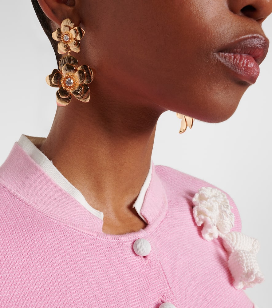 These Flower drop earrings by Self-Portrait are a fun and whimsical piece. Made in China from brass and crystals, these earrings feature a beautiful flower design. The design is a celebration of a playful and modern aesthetic and is perfect for adding a touch of sophisticated charm to your look. They are a versatile staple that you will love for years to come.