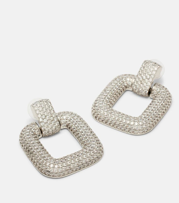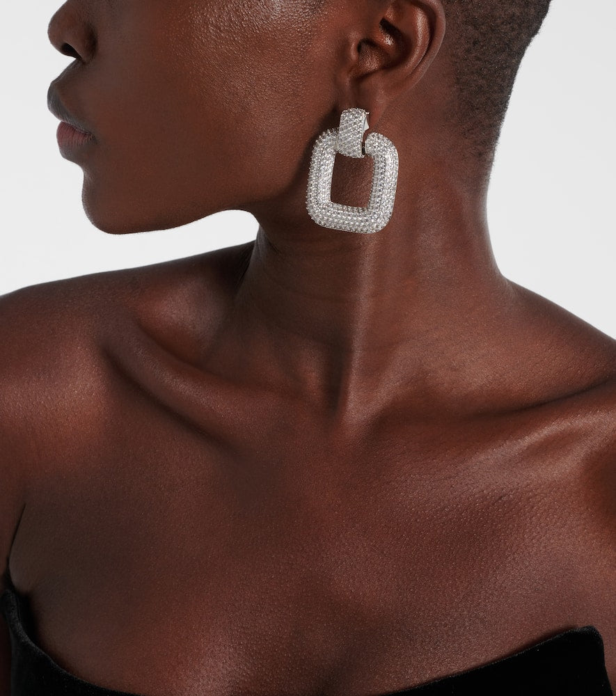 These Crystal-embellished drop earrings by Self-Portrait are a bold and striking statement. Made in China from brass, stainless steel, and cubic zirconia, these earrings feature a prominent design with shimmering crystals. The design is a celebration of a confident and fearless approach to style and is perfect for adding a touch of high-end drama to your look. They are a versatile staple that you will love for years to come.