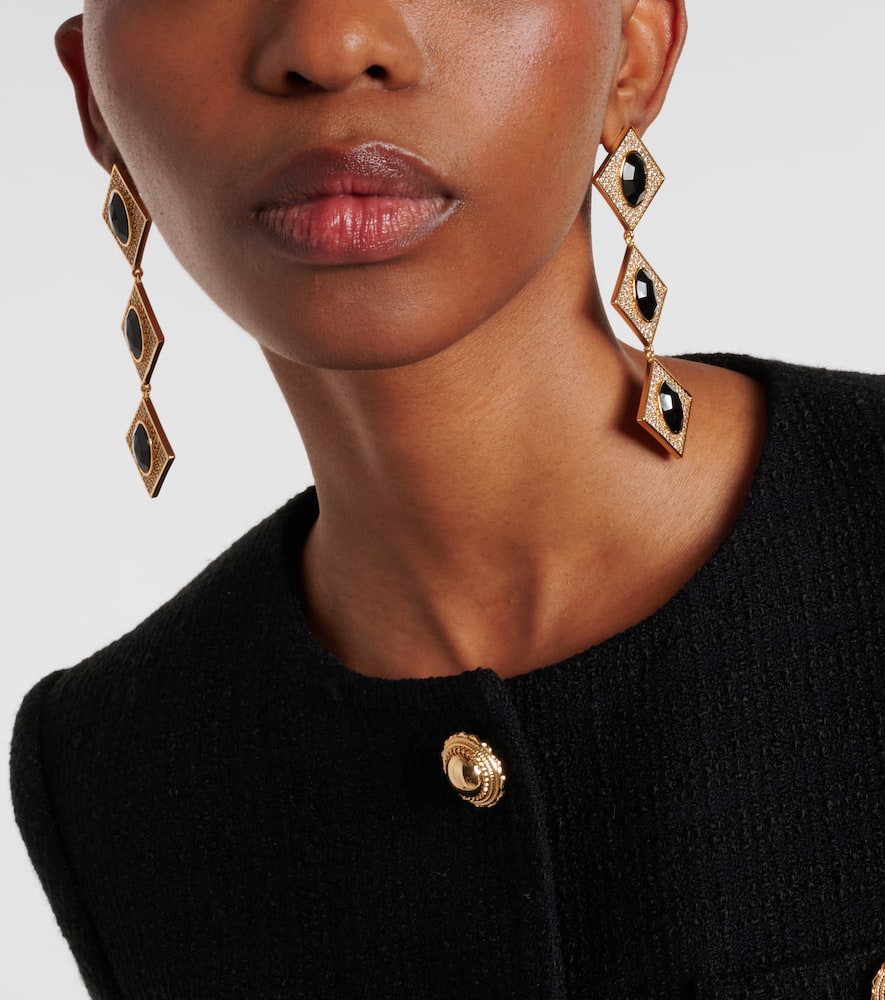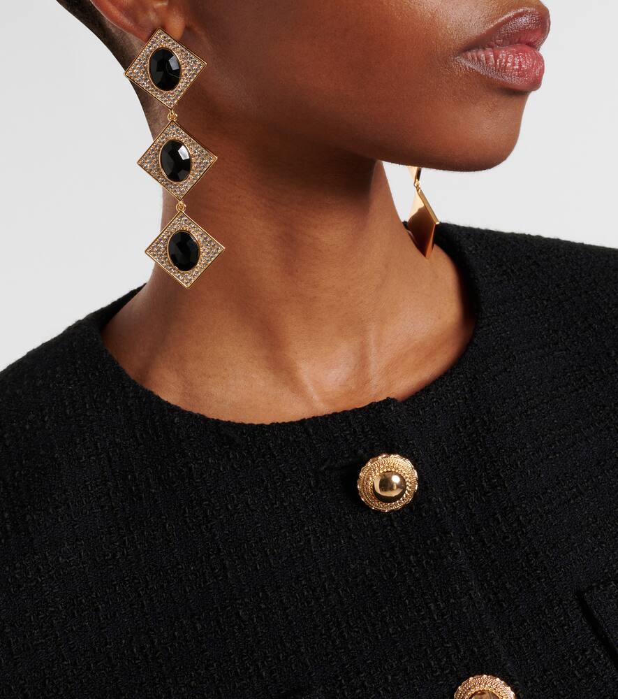 These Crystal-embellished drop earrings by Self-Portrait are a bold and striking statement. Made in China from brass, crystals, and plastic, these earrings feature a prominent drop design with shimmering crystals. The design is a celebration of a confident and fearless approach to style and is perfect for adding a touch of high-end drama to your look. They are a versatile staple that you will love for years to come.