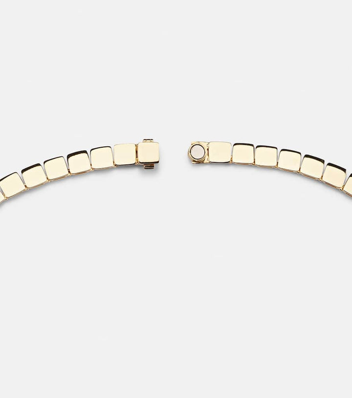 This necklace is made in Greece from 18kt yellow gold. It features diamonds with a total carat weight of 1.76. It has an open length of 41cm (16"), a min width of 5.5mm (0.2"), and a max width of 9mm (0.35").