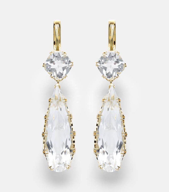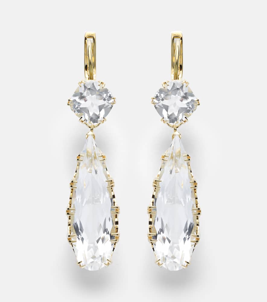 These 18kt gold earrings with white topaz by Ileana Makri are a magnificent and opulent statement. Made in Greece from 18kt yellow gold, these earrings are a breathtaking masterpiece, combining the beautiful luster of gold with the brilliant sparkle of a total carat weight of 27.6 of white topaz. The design is a celebration of a sophisticated and graceful style and is perfect for adding a touch of high-end glamour to your look. They are a versatile staple that you will love for years to come.