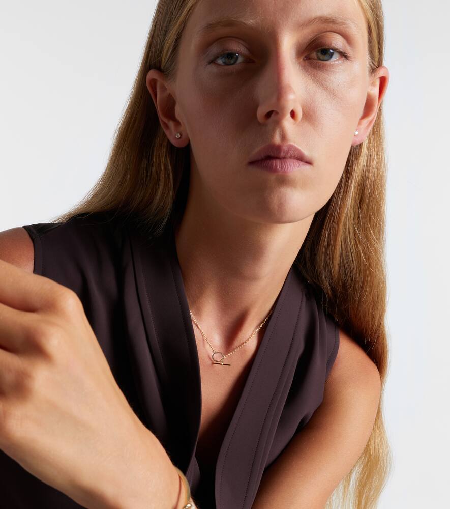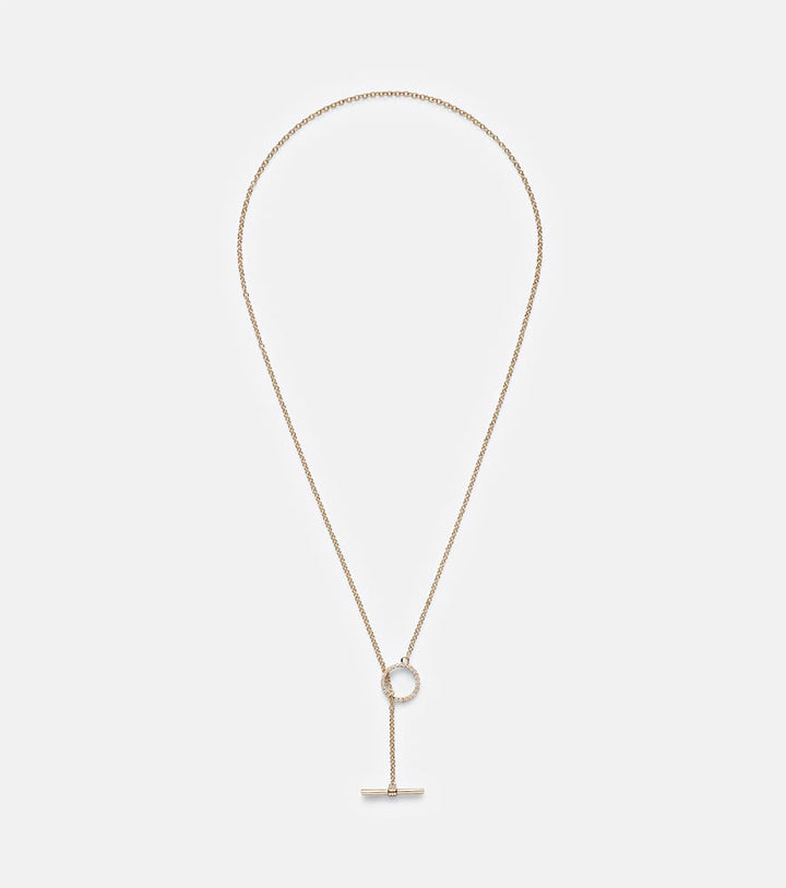 This 10kt gold necklace with diamonds by Stone and Strand is a modern and minimalist statement piece. Made in India from 10kt yellow gold, this necklace features a sleek chain adorned with 0.12 carats of shimmering diamonds. The design is a beautiful blend of a timeless aesthetic and modern luxury, perfect for adding a touch of refined sparkle to your daily look. It can be worn on its own for a subtle statement or layered with other pieces for a bolder, more personalized style.